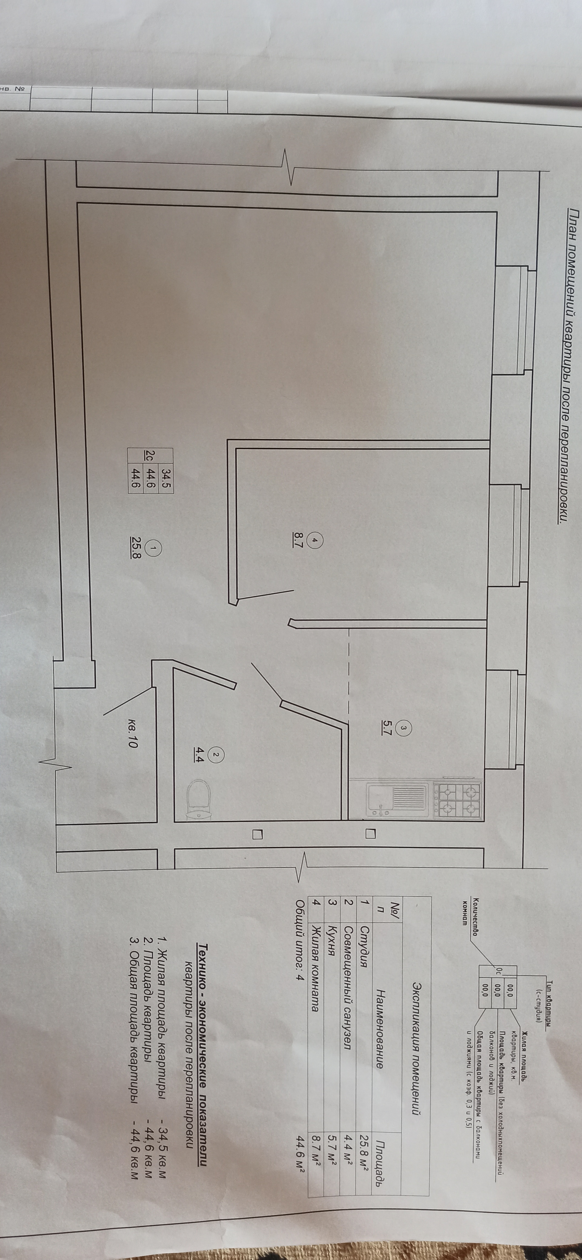 Общая площадь 42.8 м2