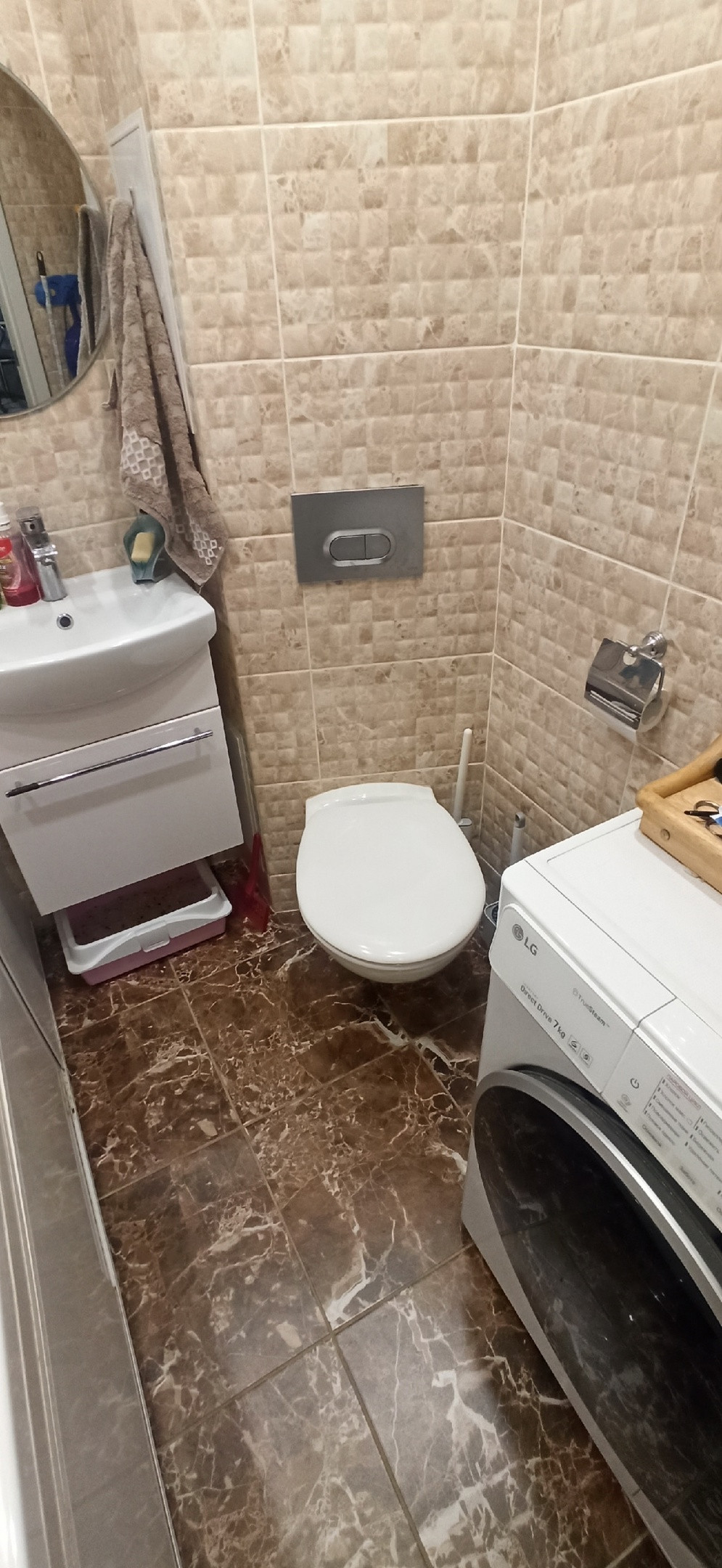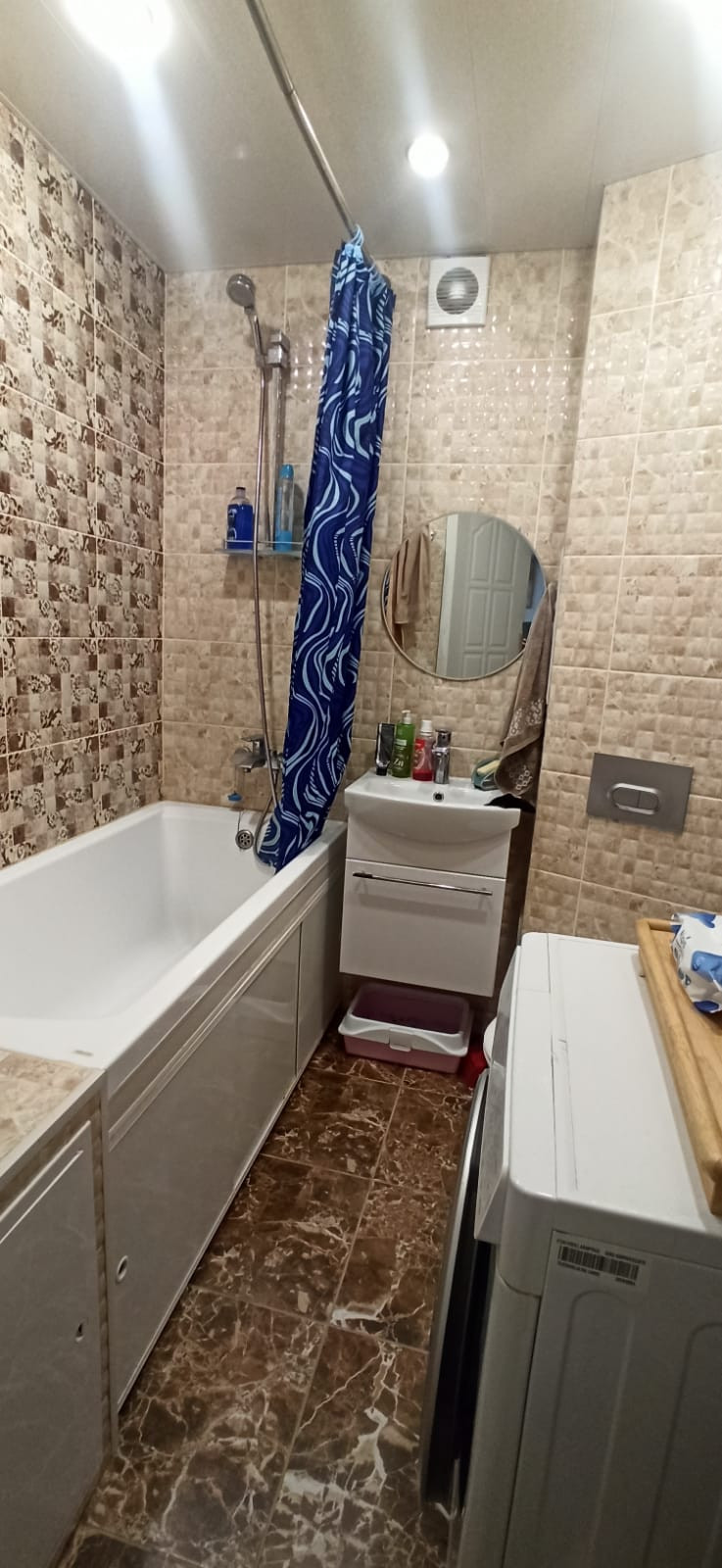 Косметический ремонт: натяжные потолки, ламинат, обои, в санузле отделаны стены и пол плиткой, новые ванна, раковина, подвесной унитаз.