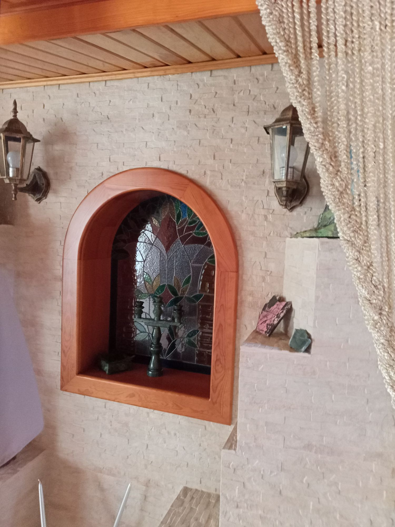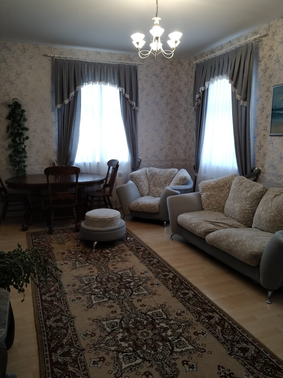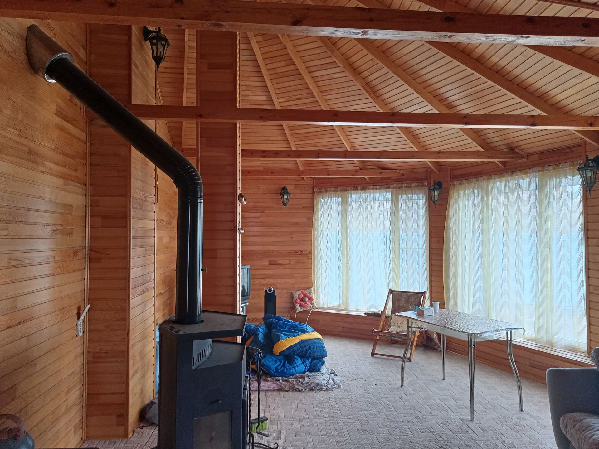 Сауна с комнатой отдыха находится в доме. Имеется третий (с отделкой под дерево) и цокольный этаж. Камин настоящий в гостиной комнате.