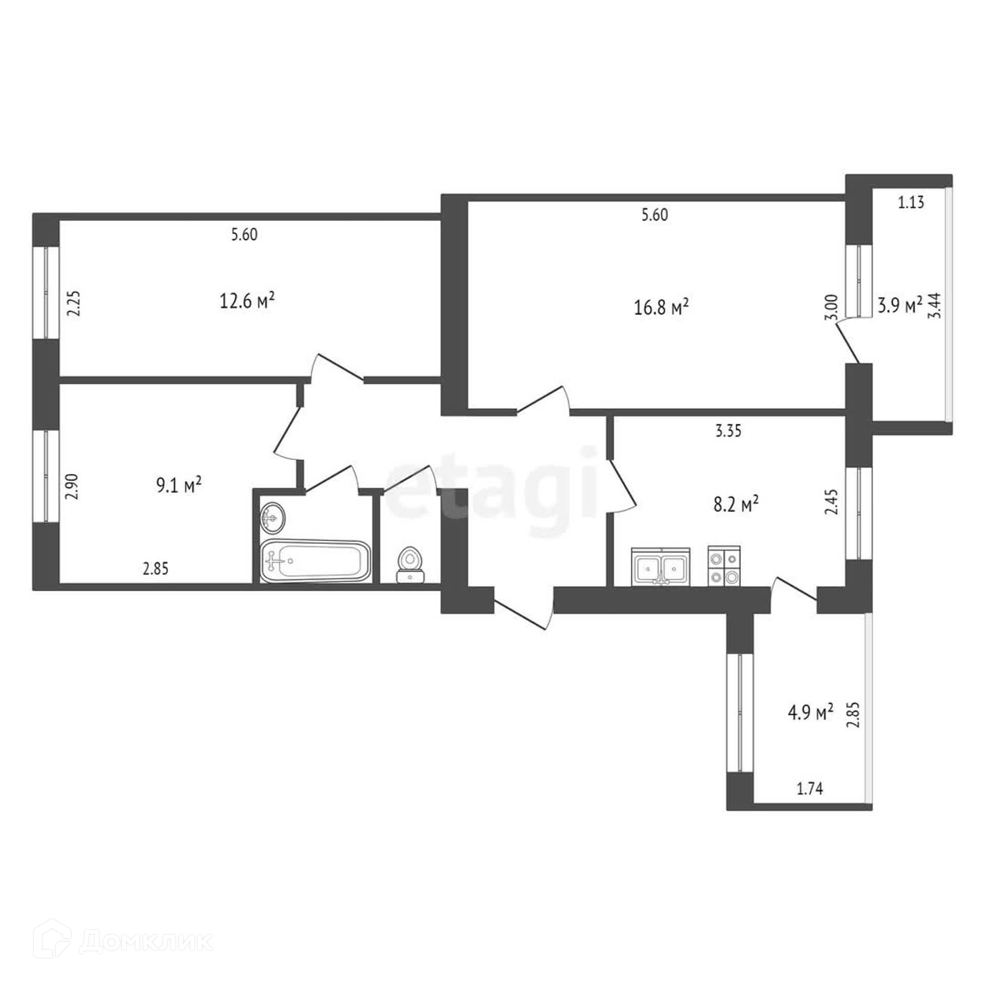 Общая площадь 58.6 м2