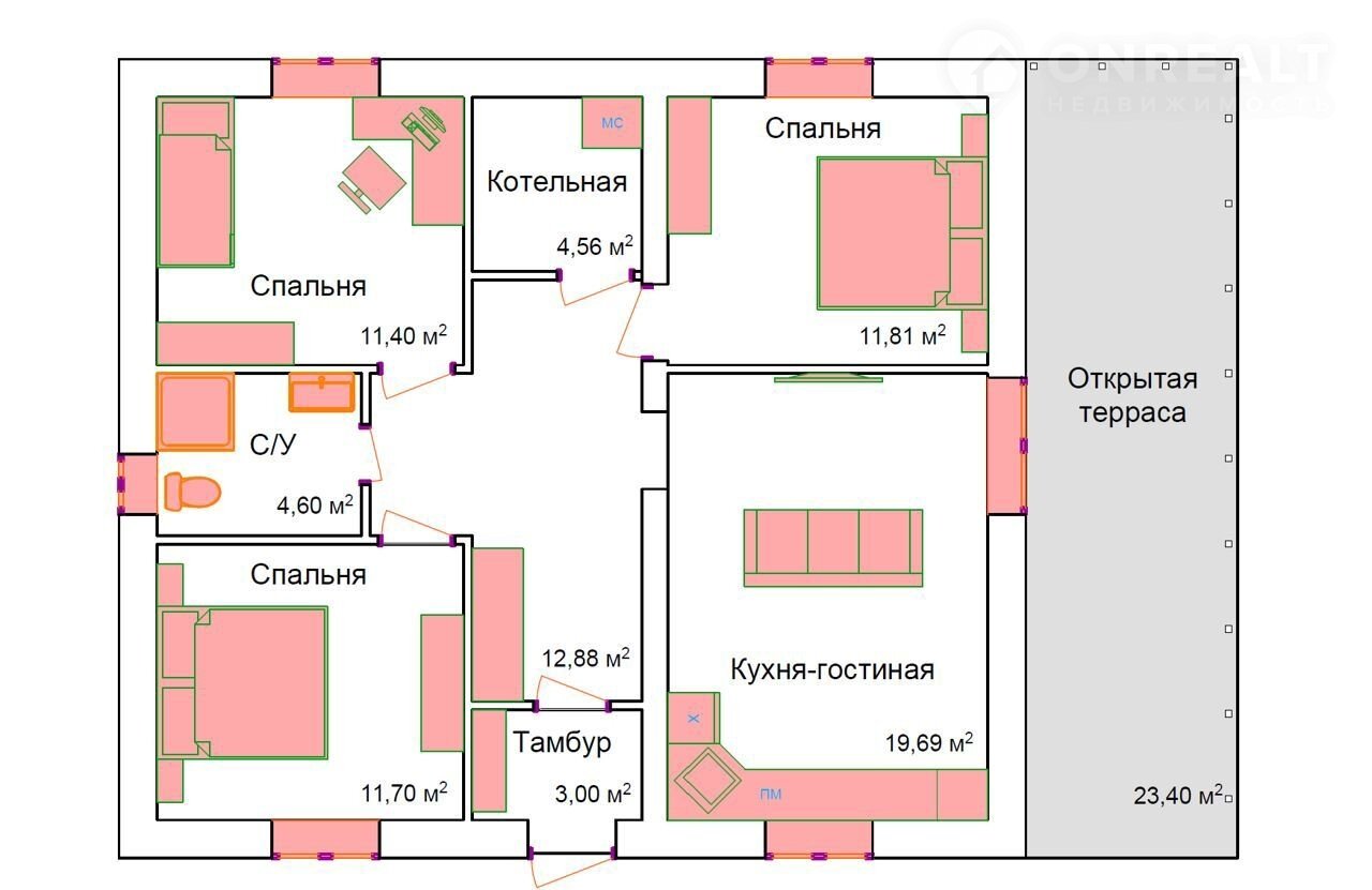Общая площадь 80 м2