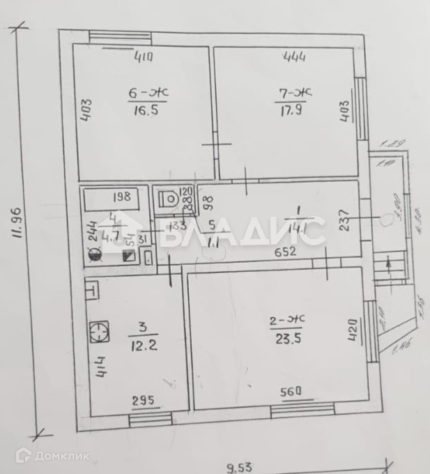 Материал стен-кирпич.