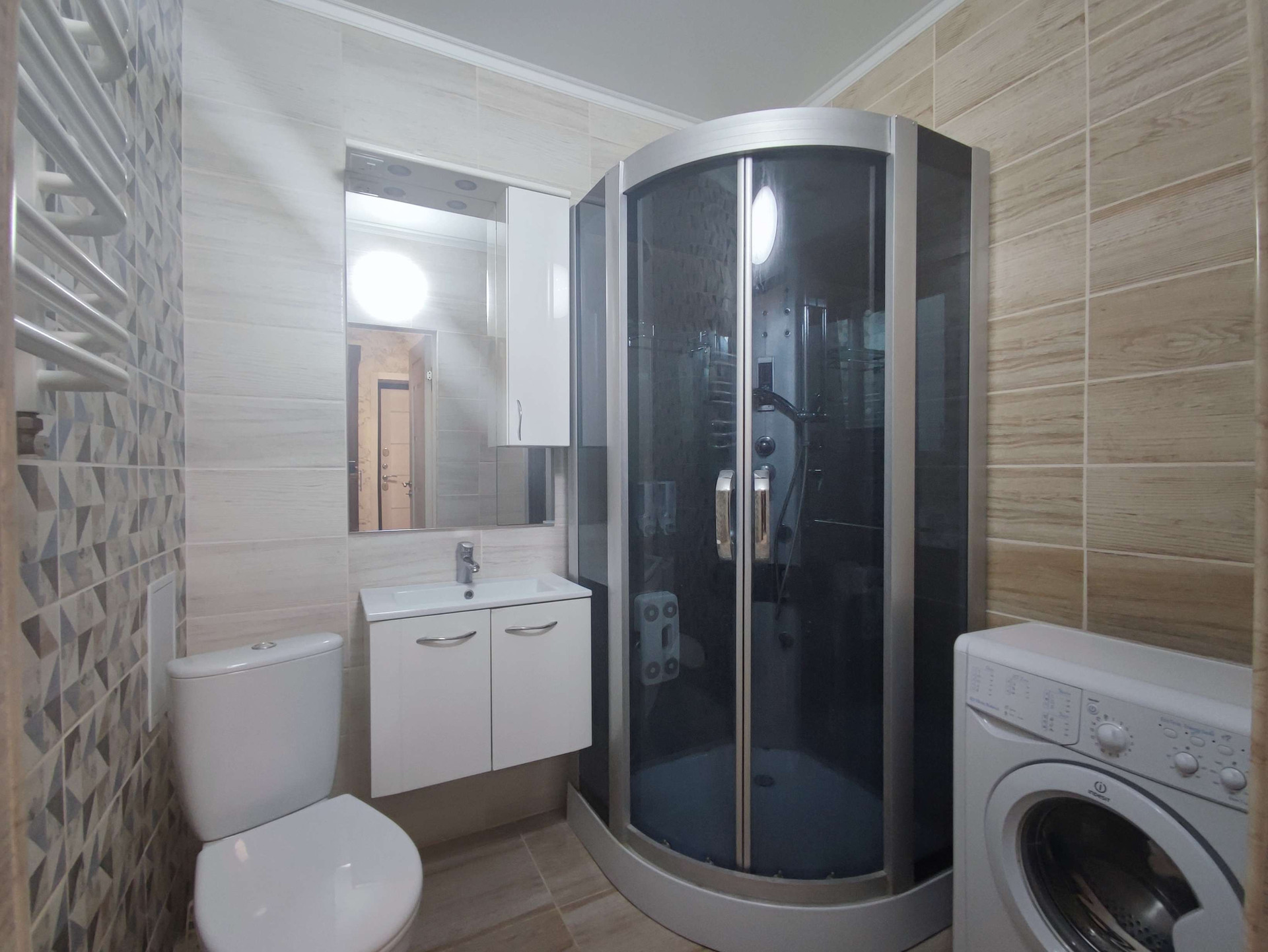 Выполнен современный ремонт из качественных материалов в светлых тонах. Всё подобрано со вкусом! Вам остаётся только разместить свои вещи.