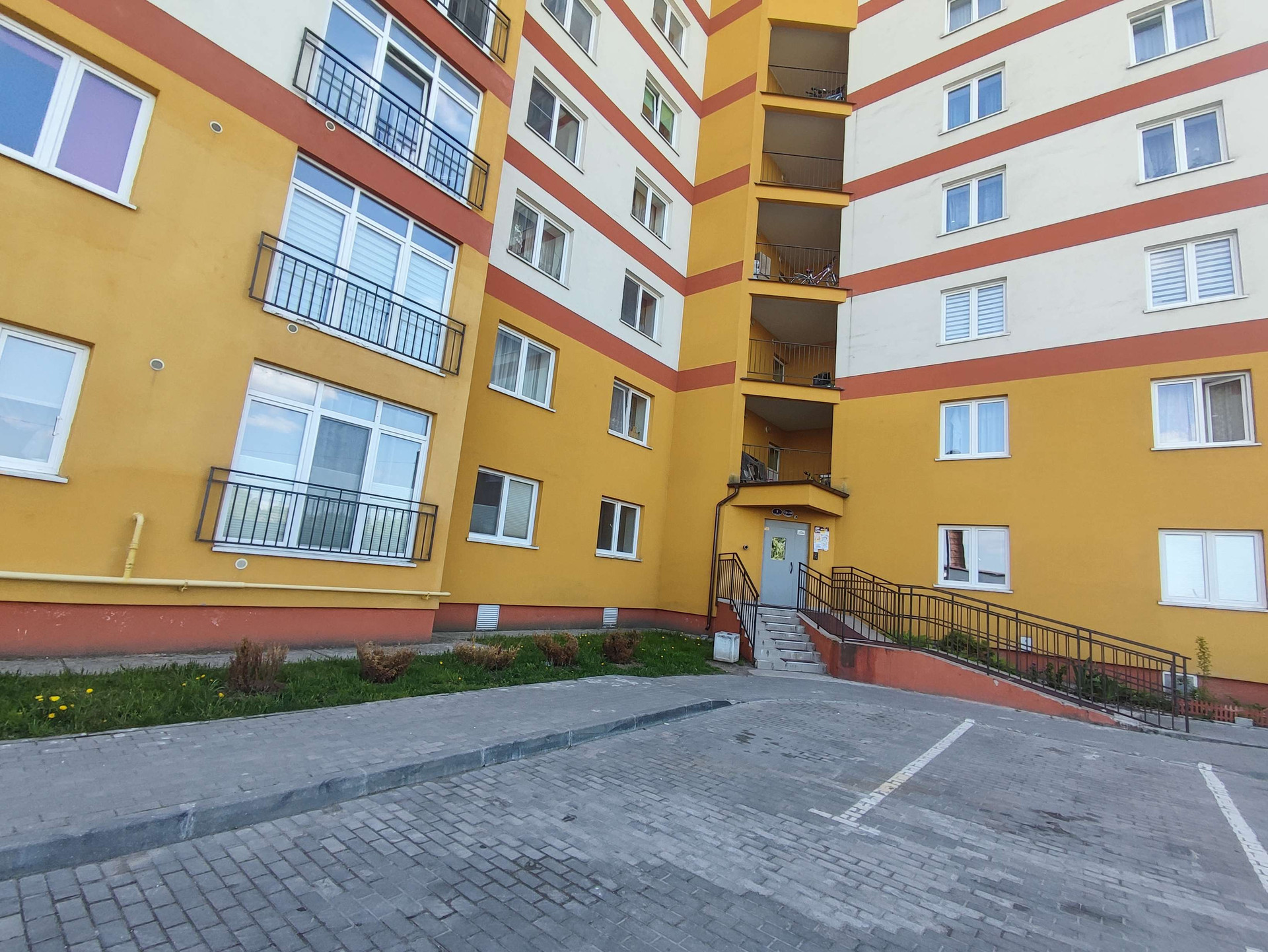 Двор благоустроенный, есть места для парковки авто, вход в подъезд через удобные входные группы. На площадке в холле два лифта грузопассажирский и пассажирский. Быстрое перемещение по этажам.