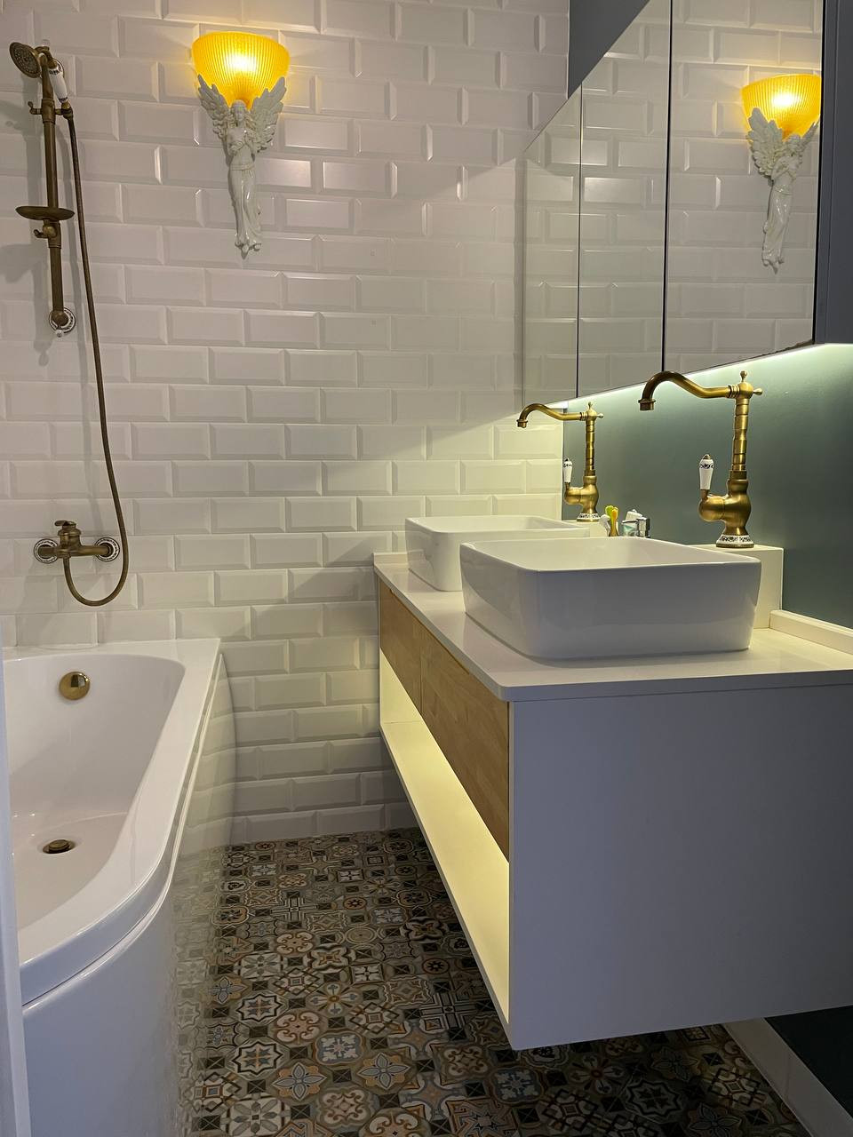 - эксклюзивные люстры, светильники, краны в ванной (бронза);