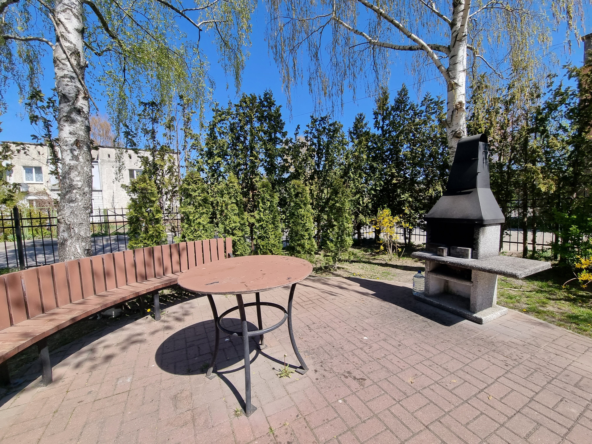 + Ухоженная зеленая огороженная территория дома (есть своё барбекю, огромное количество зеленых насаждений и парковка для машин)