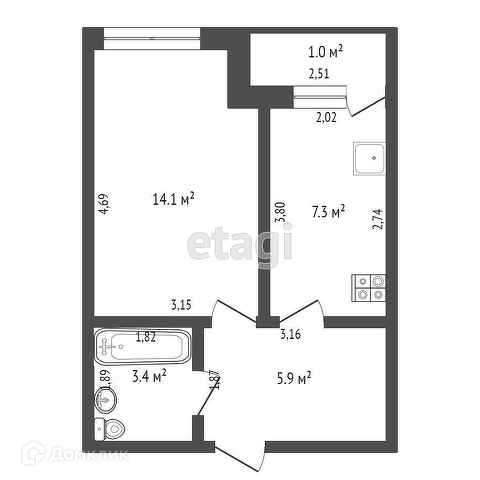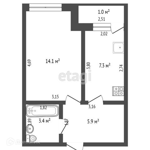 Удобная планировка, в коридоре большой вместительный шкаф, кухня с выходом на лоджию, лоджия застеклена,панорамное остекление. Комната 14,4 кв .м.хорошей формы. Сан узел объединен, в плитке, ванная.