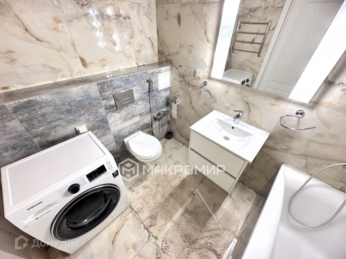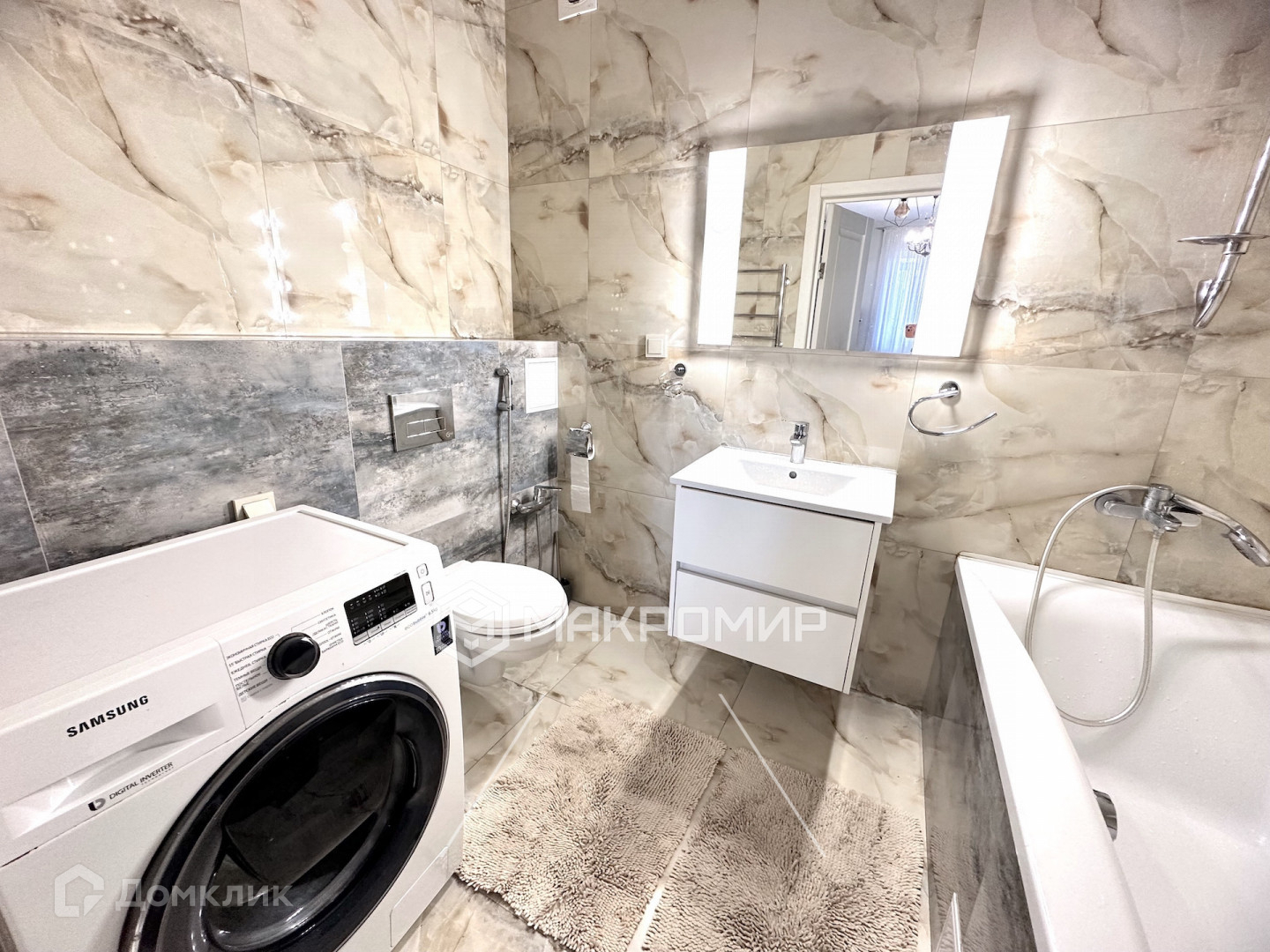 В квартире остается мебель и бытовая техника, что делает ее готовой для комфортного проживания.