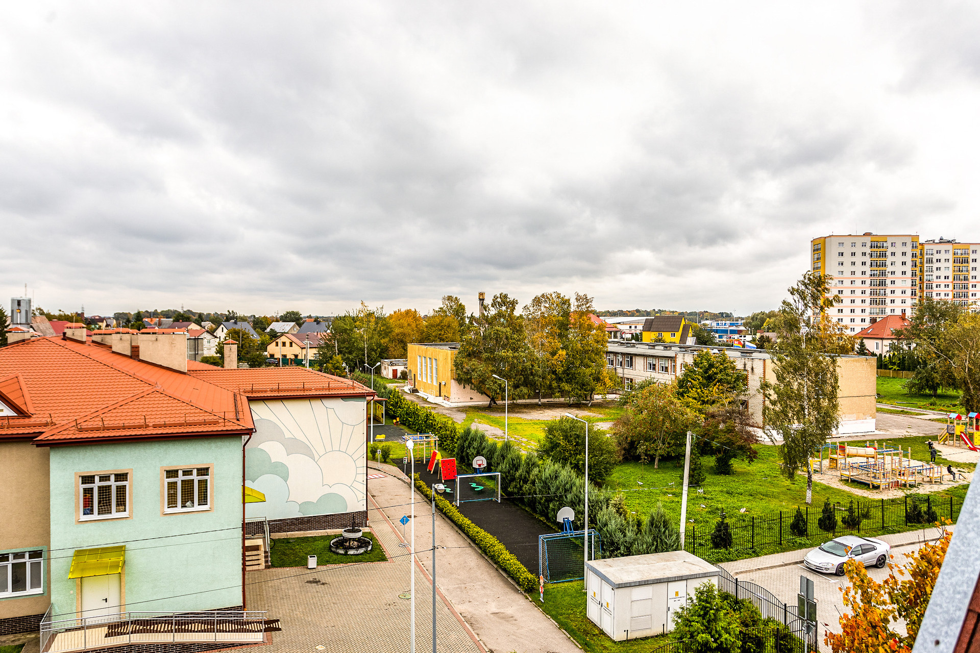 Детский сад и школа на противоположной стороне улицы!