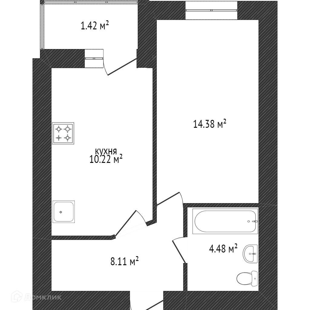 1-комнатная квартира, 30.5 м2, этаж 7 / 12, на продажу в поселке Васильково, Калининградский переулок, 4