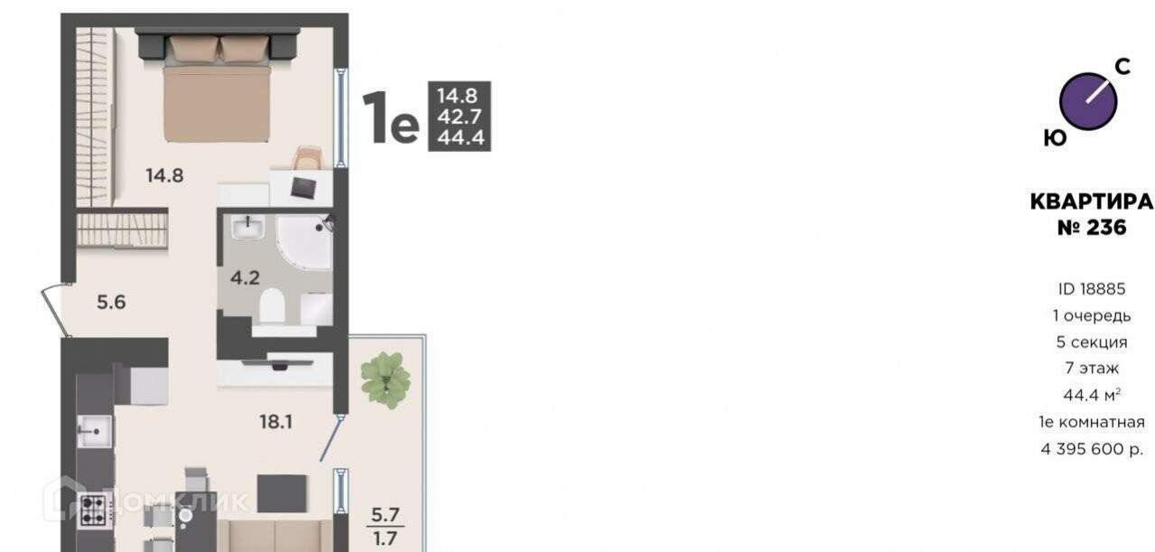 Количество комнат 1