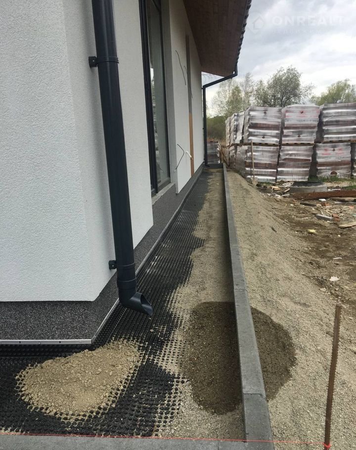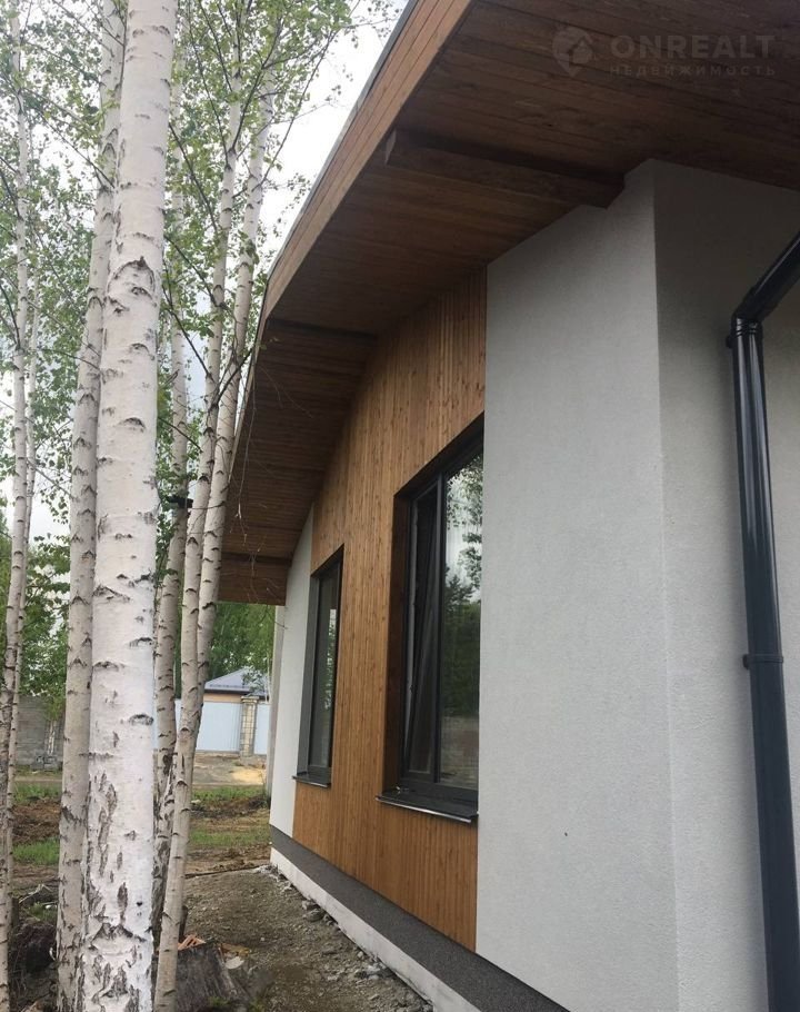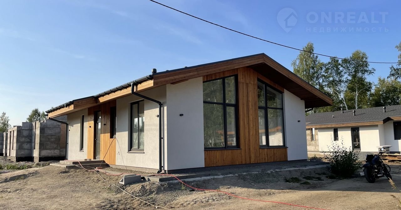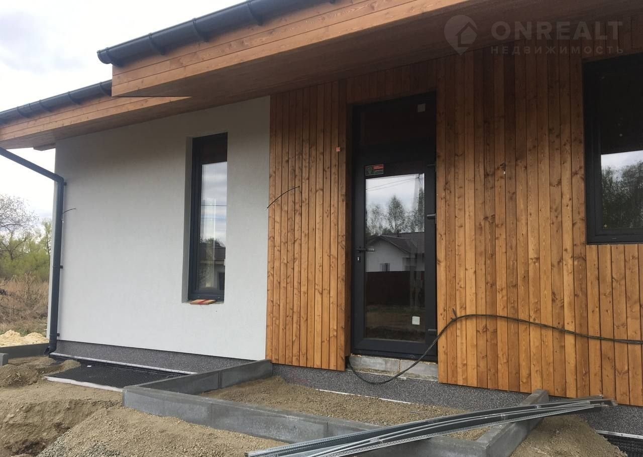 — Фасад: Отделка фасада выполнена с применением технологии "Мокрый фасад", выполненной по утеплителю- минплита 50мм, с армирующим слоем. По верх выполена декоративная штукатурка, а ниши отделаны фасадной доской "Планкен" из лиственницы. С такой отделкой фасадов, наши дома выглядят современно, лаконично и необычайно красиво. Высота потолков в доме от 3 м до 4.2 м, что даёт возможность реализовать современный и стильный дизайн вашего уютного дома.