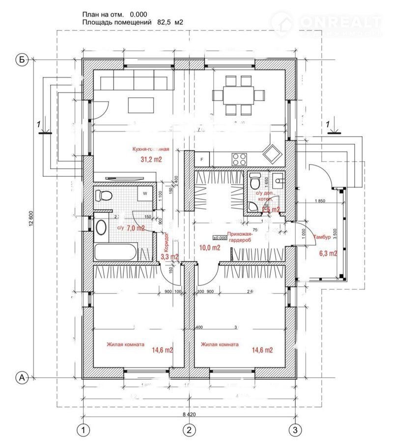 — Фундамент: свайно-ростверковый на железо-бетонных Забивных сваях длиной 3 метра сечением 300мм*300мм, обвязанных монолитным ростверком(стальной арматурой диаметром 12-14 мм с элементами усиления) шириной 400мм с утепление "Пеноплекс" по основанию и торцов. Гидроизоляция наплавляемая "Технониколь".