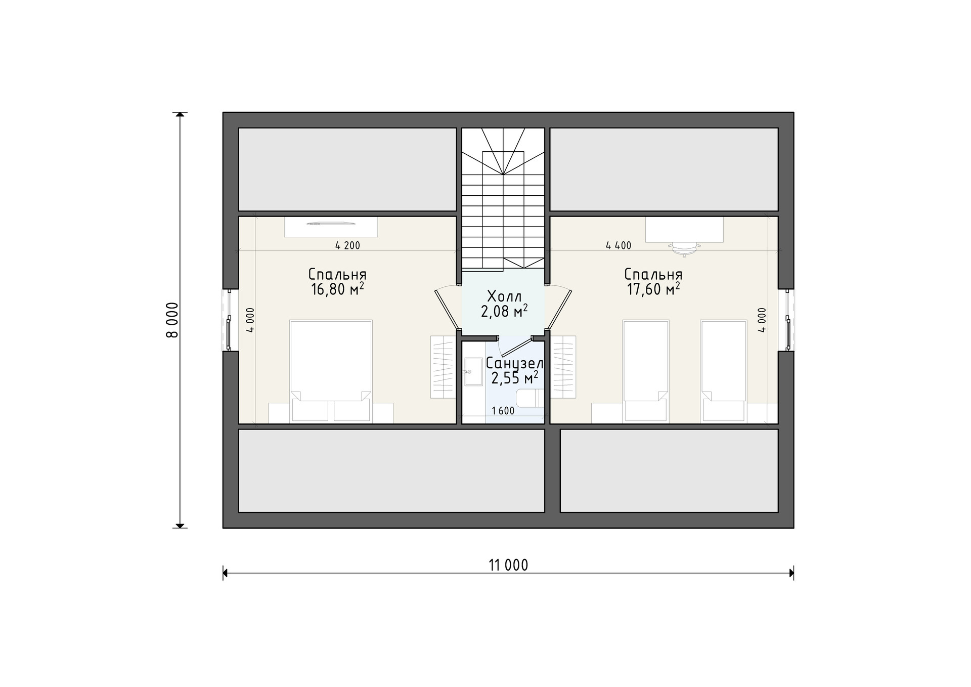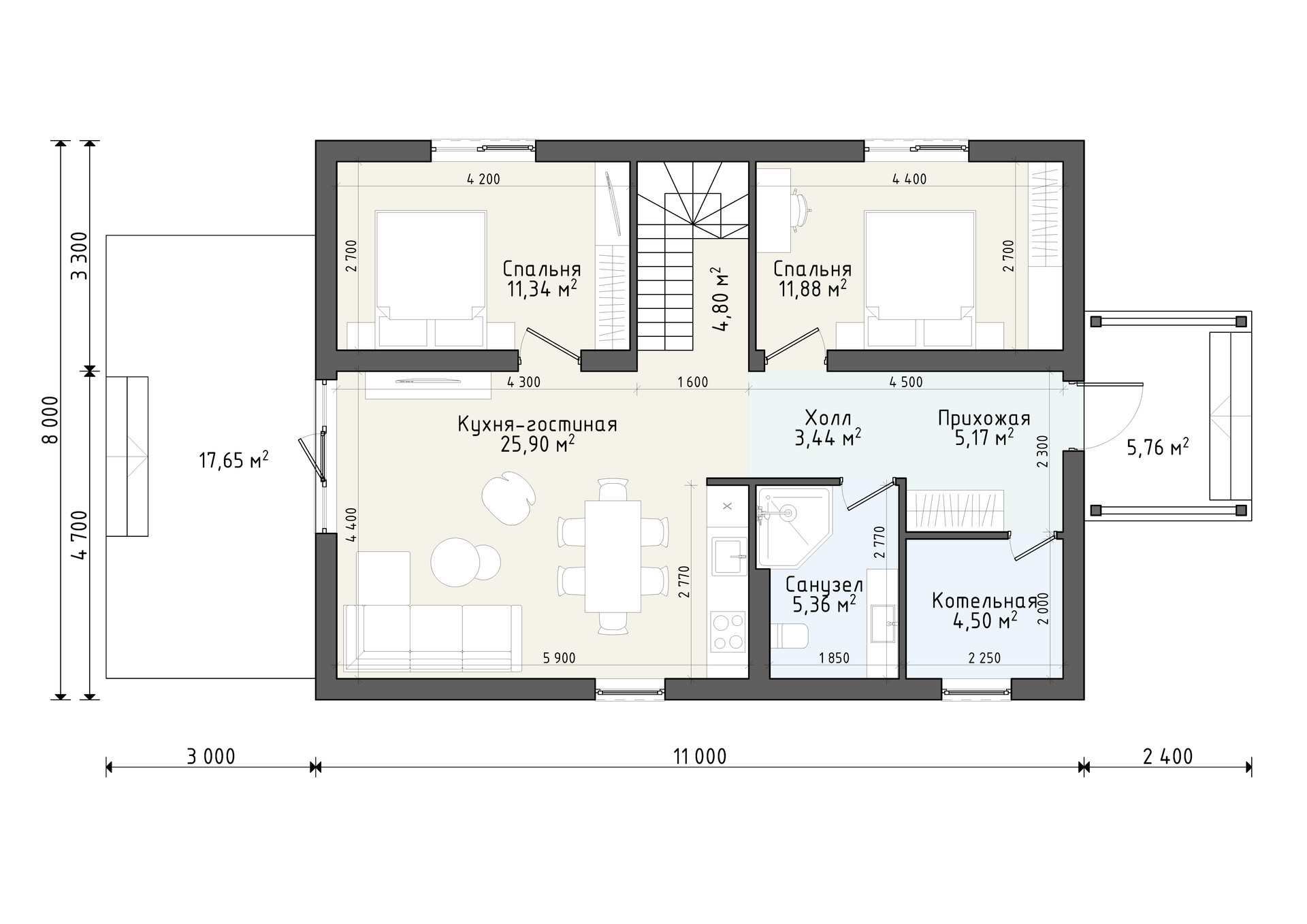 - Размеры 11 х 8 м;