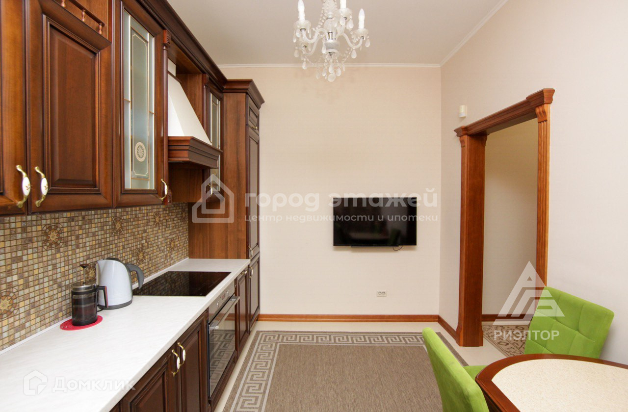Кухня (12кв.м) приятно удивит вас не только своей эстетикой, но и прекрасным функционалом. Вдоль стены встроен итальянский кухонный гарнитур из массива дерева с современными индукционной плитой, вытяжкой, посудомоечной машиной и двухкамерным холодильником (все остается новым владельцам).