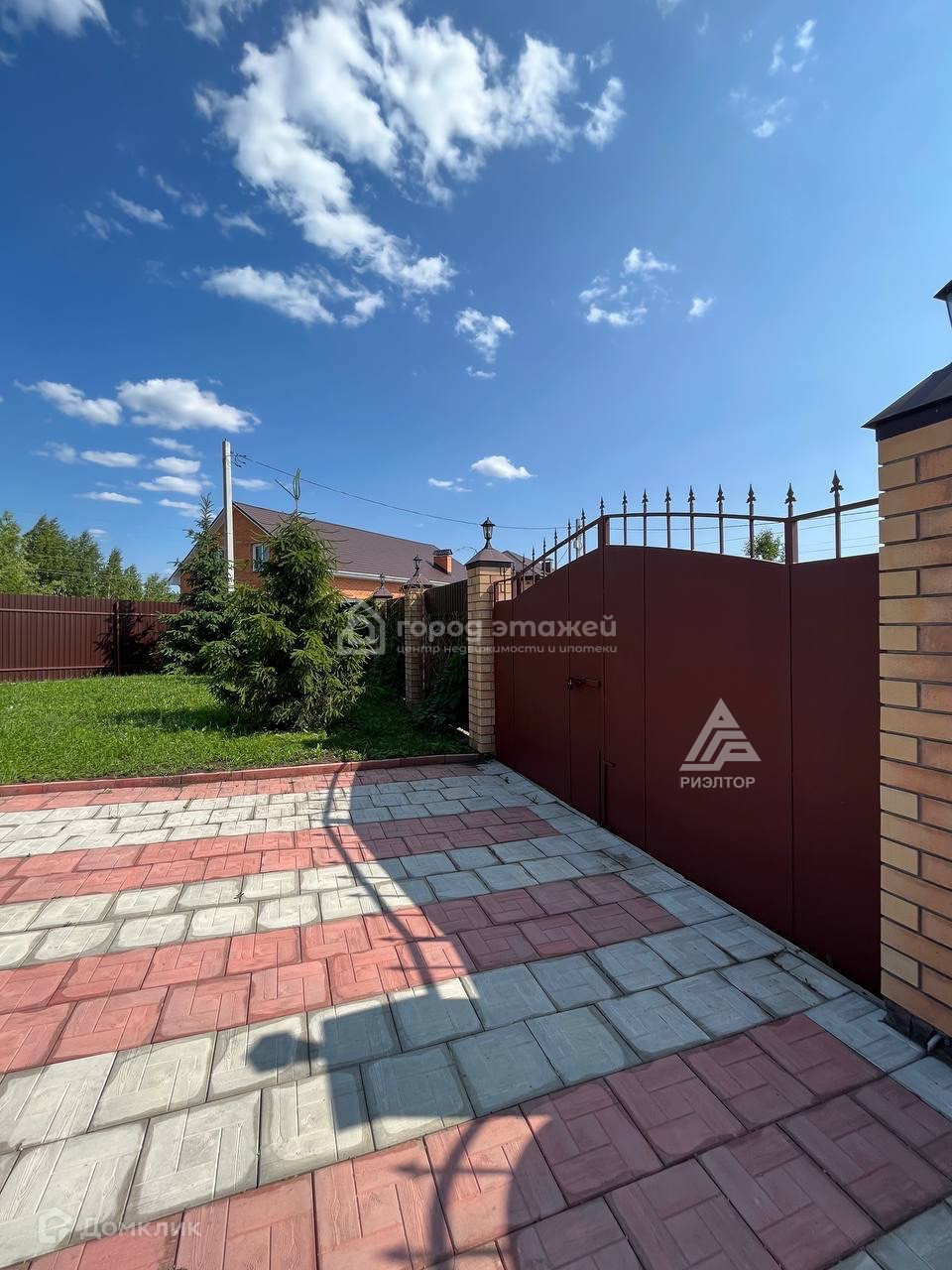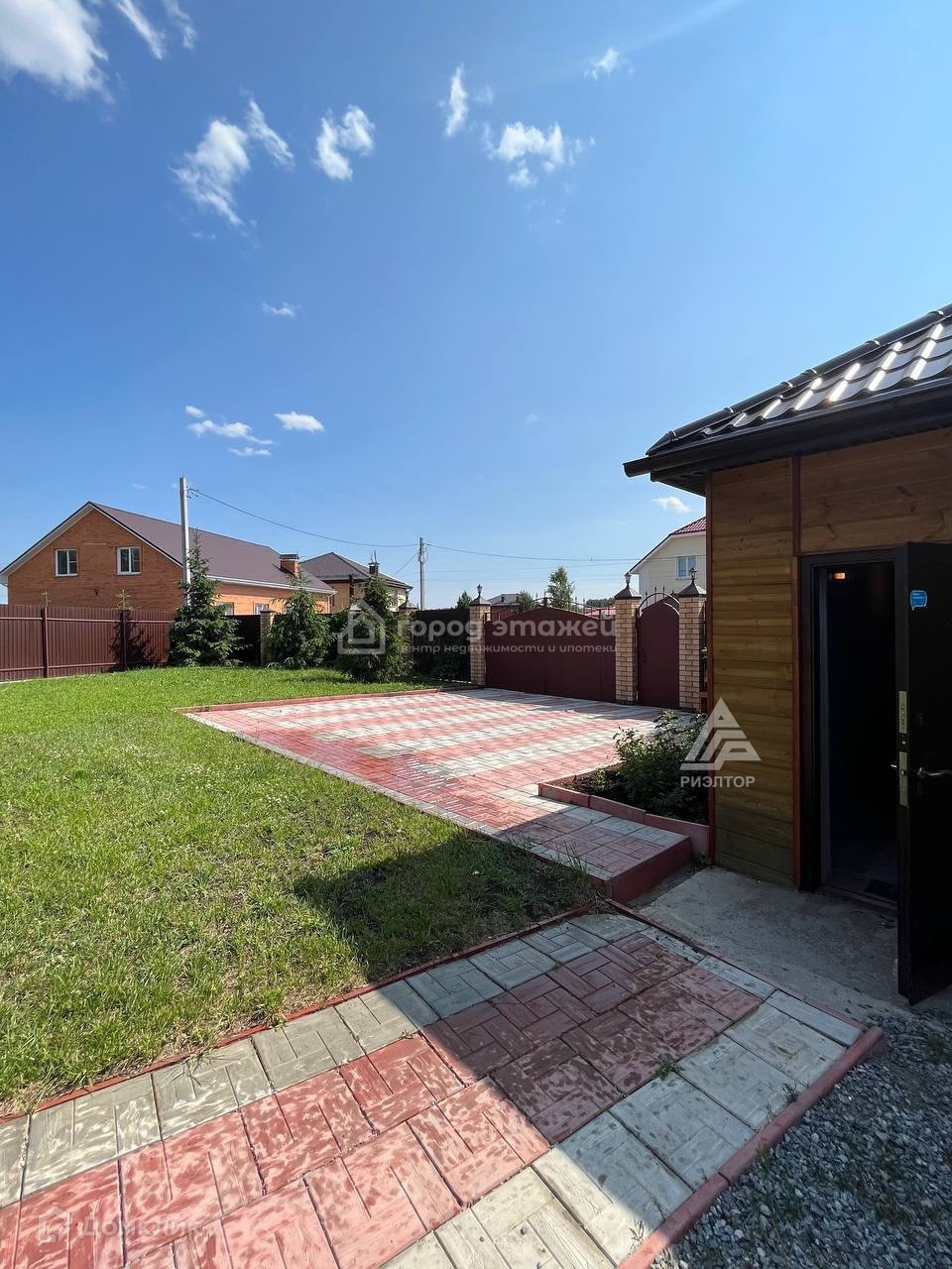 Ухоженный газон, подключен водополив, дорожки из качественных материалов.