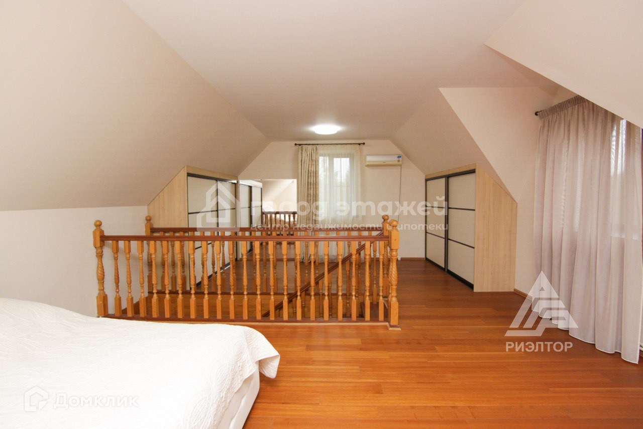 На втором этаже - большое светлое помещение с тремя окнами, зонированное под спальню и большую гардеробную. При желании может быть разделено на две отдельные комнаты.