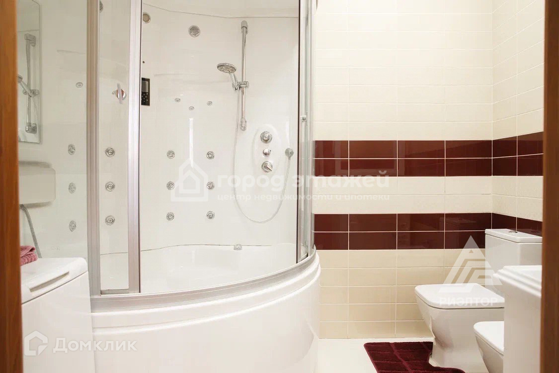 Совмещенный санузел: просторный с качественной сантехникой и большой душевой кабиной, привезенной под заказ, которые вместе со стиральной машиной остаются новым хозяевам.