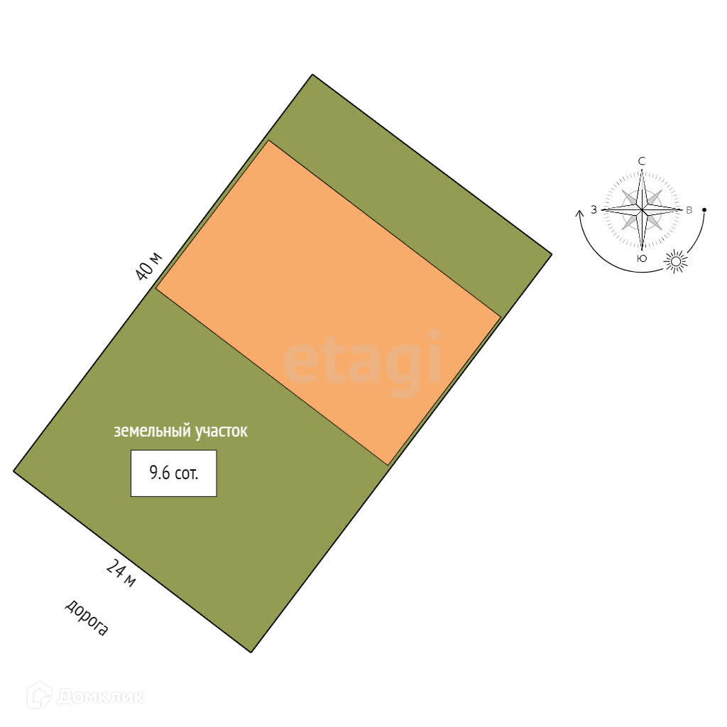 Площадь участка 9.6 сот.