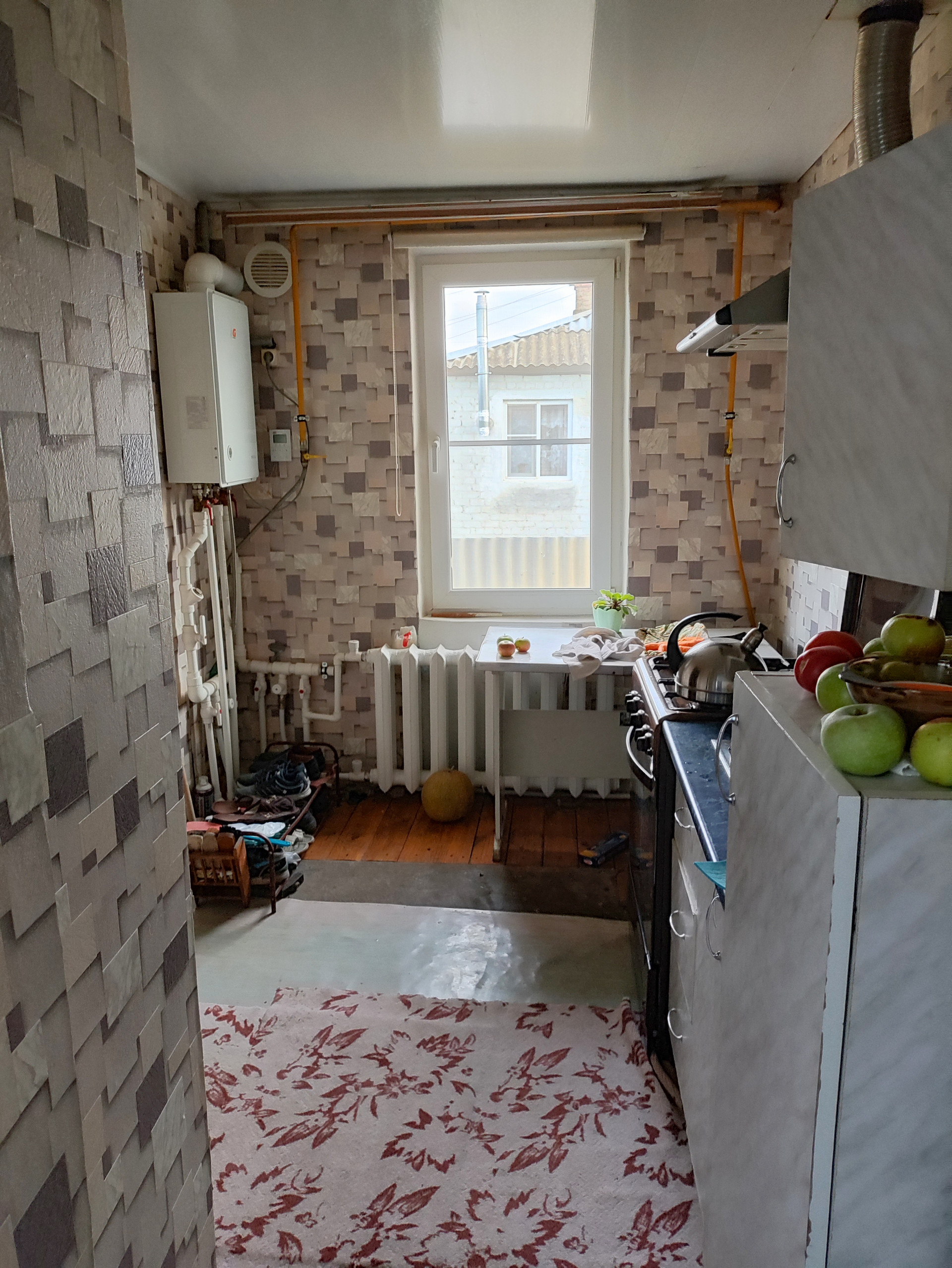 - кухня, столовая, коридор, сан узел раздельный в нем теплый пол (туалет, душевая, можно установить ванную), топочная, два выхода из дома (один вход с улицы, второй во двор)