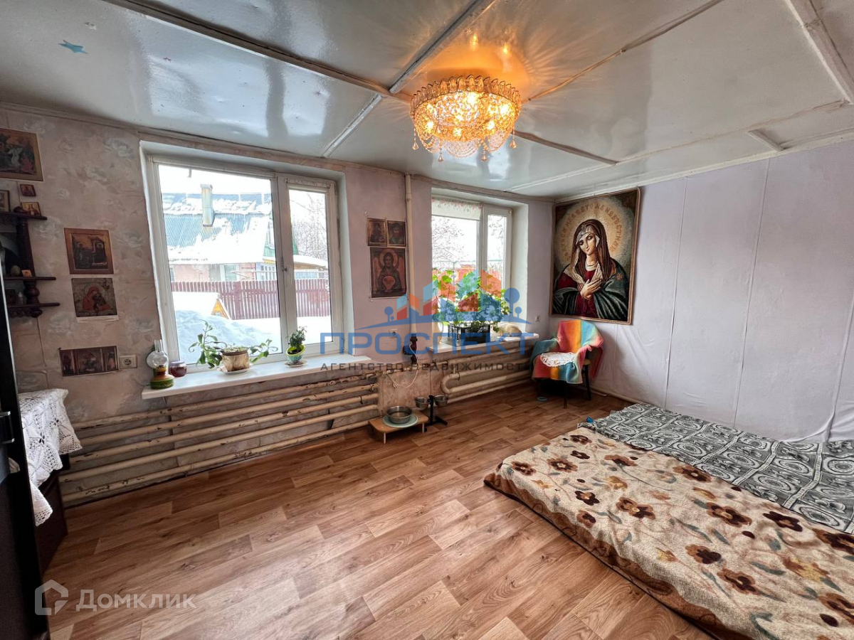 Дом площадью 79,5 кв.м. - 2-х этажный, 1-й этаж из блоков, 2-ой деревянный. Жилая площадь 53.9 кв.м., 4 жилые комнаты. Дом полностью отапливается. В доме ванная и туалет.