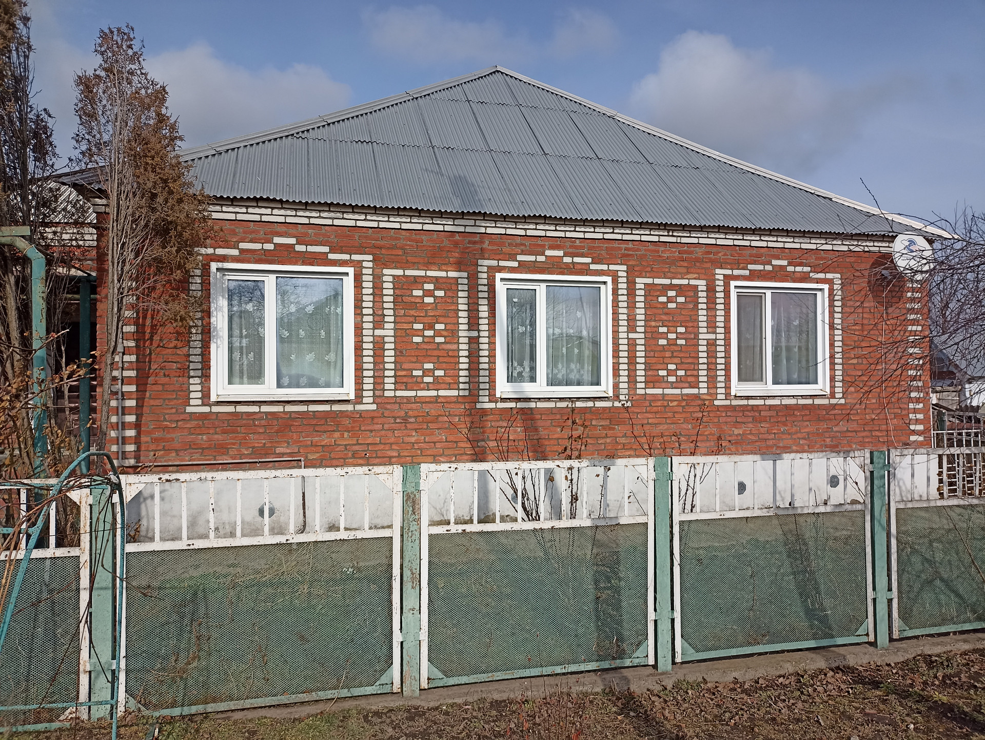 Одноэтажный благоустроенный добротный дом из красного кирпича. Металлическая кровля. В доме большие светлые комнаты, широкий коридор, санузел раздельный, выложен кафелем. Полы деревянные, окна пластиковые, котел расположен в котельной комнате. Кухня большая, в которой находится колонка для подогрева воды. В 2021г. сделан косметический ремонт. Частично остается мебель. Во дворе имеется гараж, летняя кухня, сауна, бассейн открытый, несколько хоз.построек, оборудованы нутрятник, курятник. Имеется огороженный сад, огород. Канализационный септик на территории огорода. Внутренний двор выложен плиткой, имеется виноградник. Торг уместен. Возможна ипотека.
