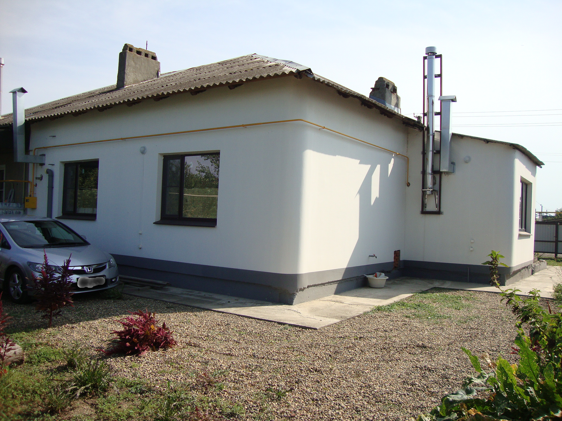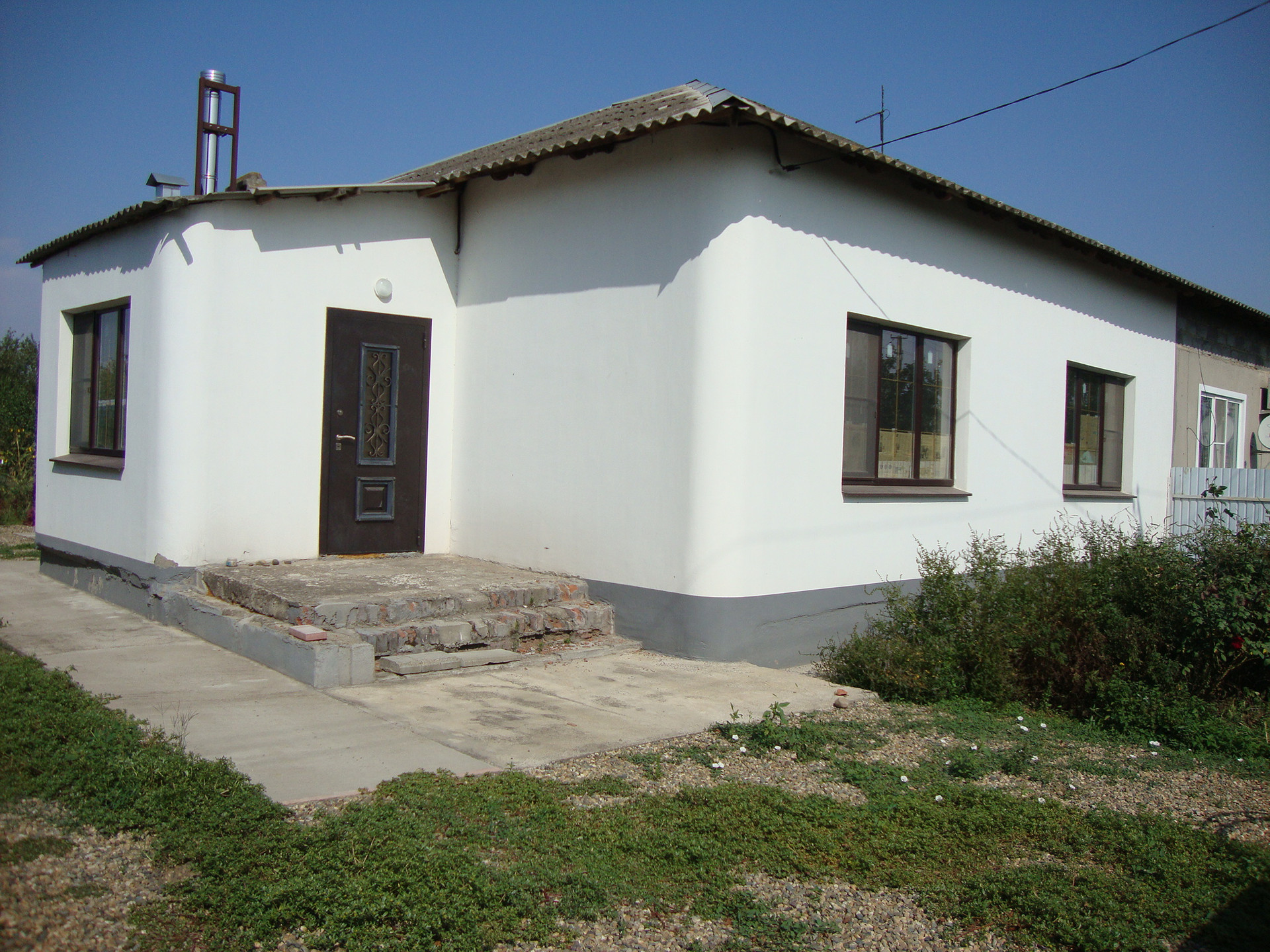 Дом (№22/2) новый, никто не проживал, не зарегистрирован. Стены монолитные из бетоно-керамзита, снаружи выполнена шпаклёвка с нанесением сверхтонкой жидкокерамической термоизоляции "Броня", которой также изнутри покрыты оконные откосы, наружный периметр схождения стен и полов на высоту-ширину около 0,5 м, что обеспечивает дополнительную термо-влагоизоляцию строению. Под кухней подвал. Перекрытия потолка бетонные, по чердаку утеплены 10см матами "Технониколь". Кровля шиферная. Отопительный котёл в прихожей, газовая колонка для подогрева воды на кухне. Предусмотрено размещение сауны сухого типа - парная и раздевалка, полы облицованы керамогранитом, стены и потолки покрыты "Бронёй". Пол в прихожей облицован керамогранитом. Пол на кухне наслан влагостойкой многослойной фанерой 18мм, покоящейся на металлических фермах, утеплен снизу пеноплексом "Технониколь" 50мм. Стены и полы душевой и туалета облицованы начисто керамической плиткой. Потолки жилых комнат оштукатурены начисто, подготовлены под оклейку или покраску. Стены жилых комнат оштукатурены начисто, подготовлены под оклейку обоями. Во всех жилых комнатах наклеены плинтуса в углах схождения стен и потолков. Разводка отопления по полу. Пол готов к монтажу ламината или паркетной доски. Под заливкой пола во всех комнатах, кроме кухни, лежит пеноплекс "Технониколь" 50мм, заливка пола бетонная с полимерным наполнителем 30-50мм. Электропроводка медным проводом, по чердаку. Смонтирован электрощиток, каждая комната отключается отдельно, предусмотрено подключение стабилизатора напряжения. Устроено заземление контура. Утроено наружное освещение на фасадах: плафон над входом, плафон на тыльной стене прихожей, плафон со стороны сада/огорода, а также смонтированы три наружных розетки. Устроены уличные водяные краны: за углом прихожей холодный, со стороны сада/огорода в районе кухни горячая-холодная, с водоотводом. Забор металлический, ворота откатные. Земельный участок №22/2. С лицевой стороны устроен палисадник с чайными розами. С тыльной стороны высажены молодые плодоносящие деревья: абрикос, чернослив, чудо-вишня, инжир, кизил, яблони автохтонных сортов. Заложен виноградник 6 кустов. Заложен ягодник: малина, смородина, арония черноплодная. Культивируются фенхель многолетник, садовый шалфей, мята, пижма бальзамическая, мелисса, манарда (канадский бергамот), зверобой.