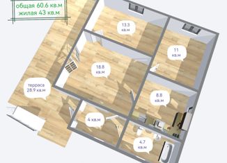 Общая площадь: 60.6 м2