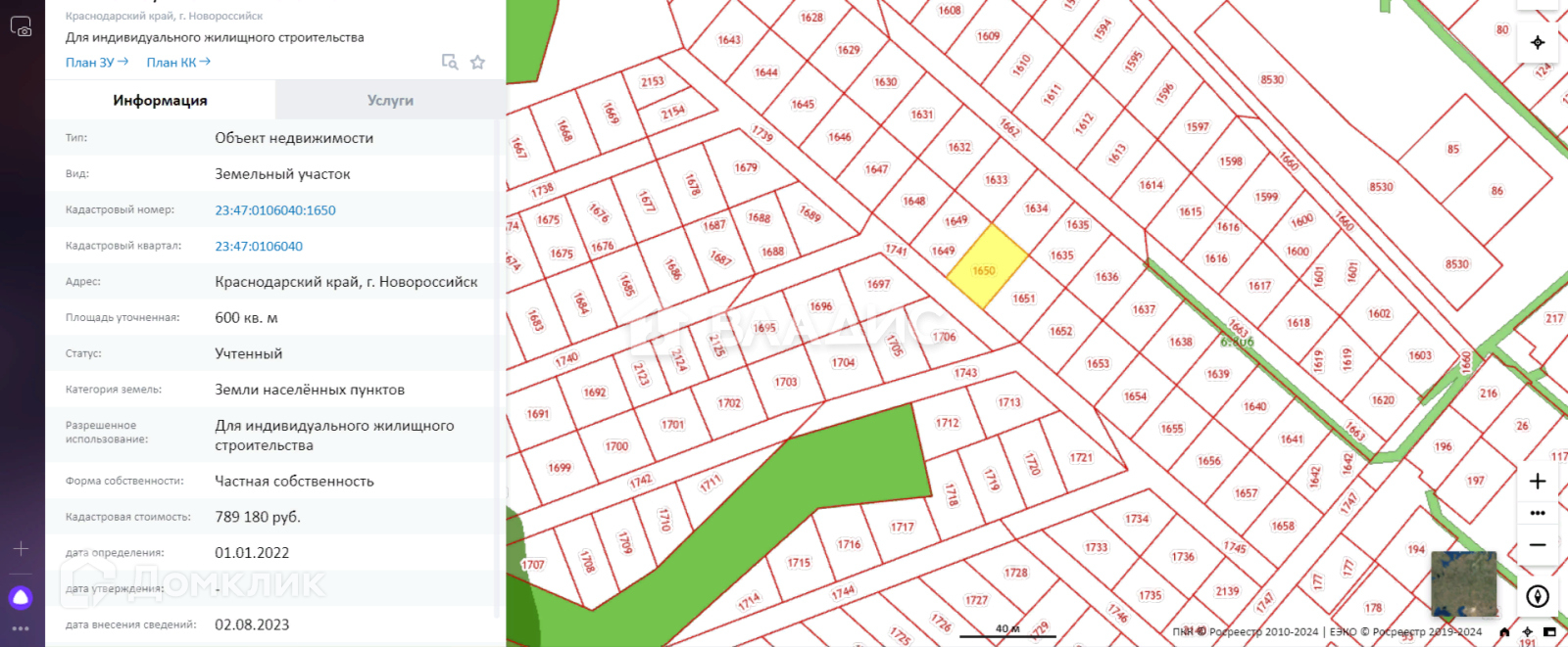 Участок ровный, фасад 20 метров, глубина 30 м, категория земель: Земли населенных пунктов, - ИЖС.