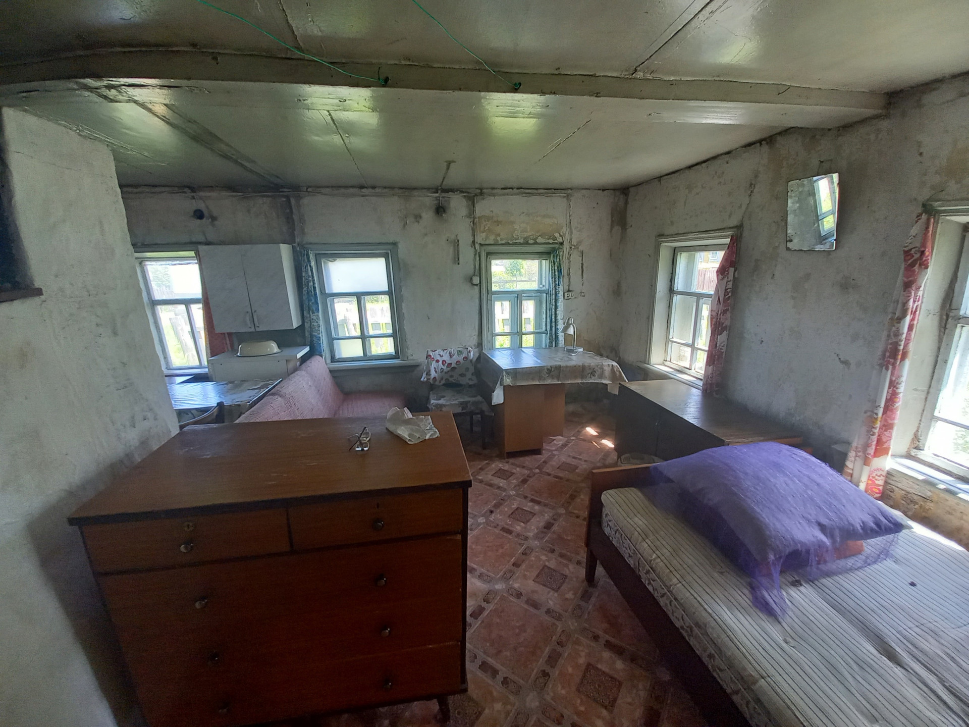 Фундамент ленточный,стены бревно,крыша шифер. Отопление печное. Электро-энергия. Водоснабжение- колодец и центральный водопровод.Туалет- яма.
