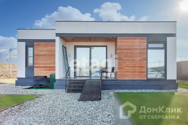 В продаже одноэтажный дом 75 м2 в современном стиле хай-тек, на земельном участке 5,96 сотки, на закрытой охраняемой территории.