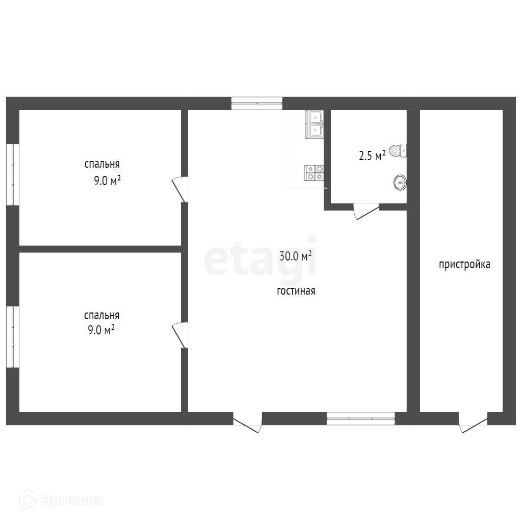 Общая площадь 52.5 м2