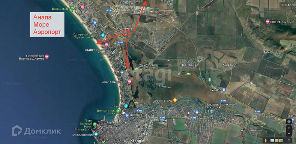 Продается земельный участок 6 соток для сельскохозяйственного использования в поселке Верхнее Джемете. На территории расположения участка открывается прекрасный вид на море и прилежащую местность. До Анапы и до ближайшего пляжа 15 минут езды на машине. Въезд в поселок через х.Красный либо х.Воскресенский.