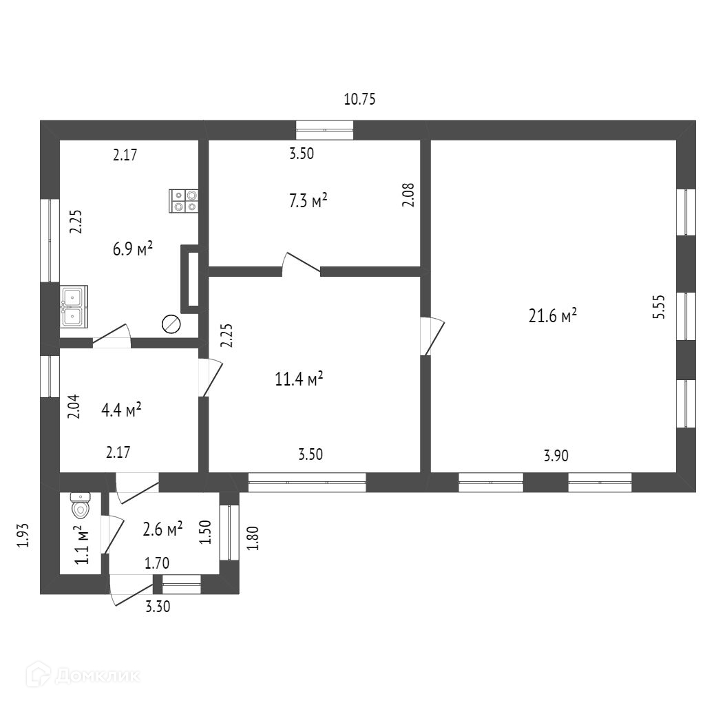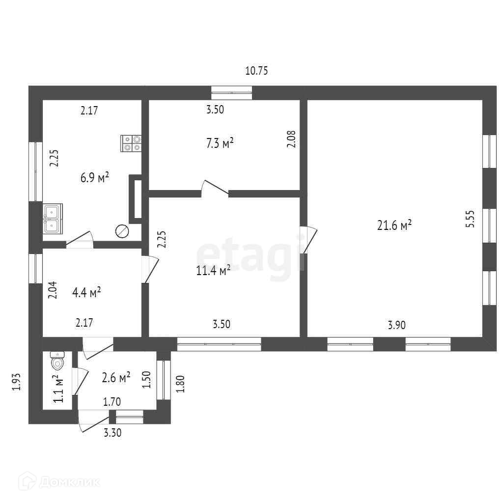 Общая площадь 55.3 м2