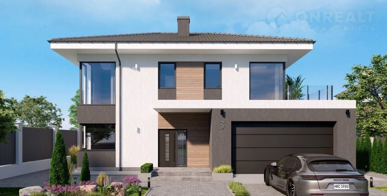 Дом 2 полноценных этажа, общей площадью 196 м2, включающие в себя гараж на 2 автомобиля, +  террасы на 1 и 2 этажах общей площадью 100 м2.
