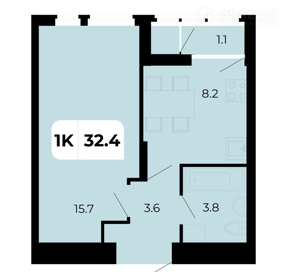 Общая площадь 32.4 м2