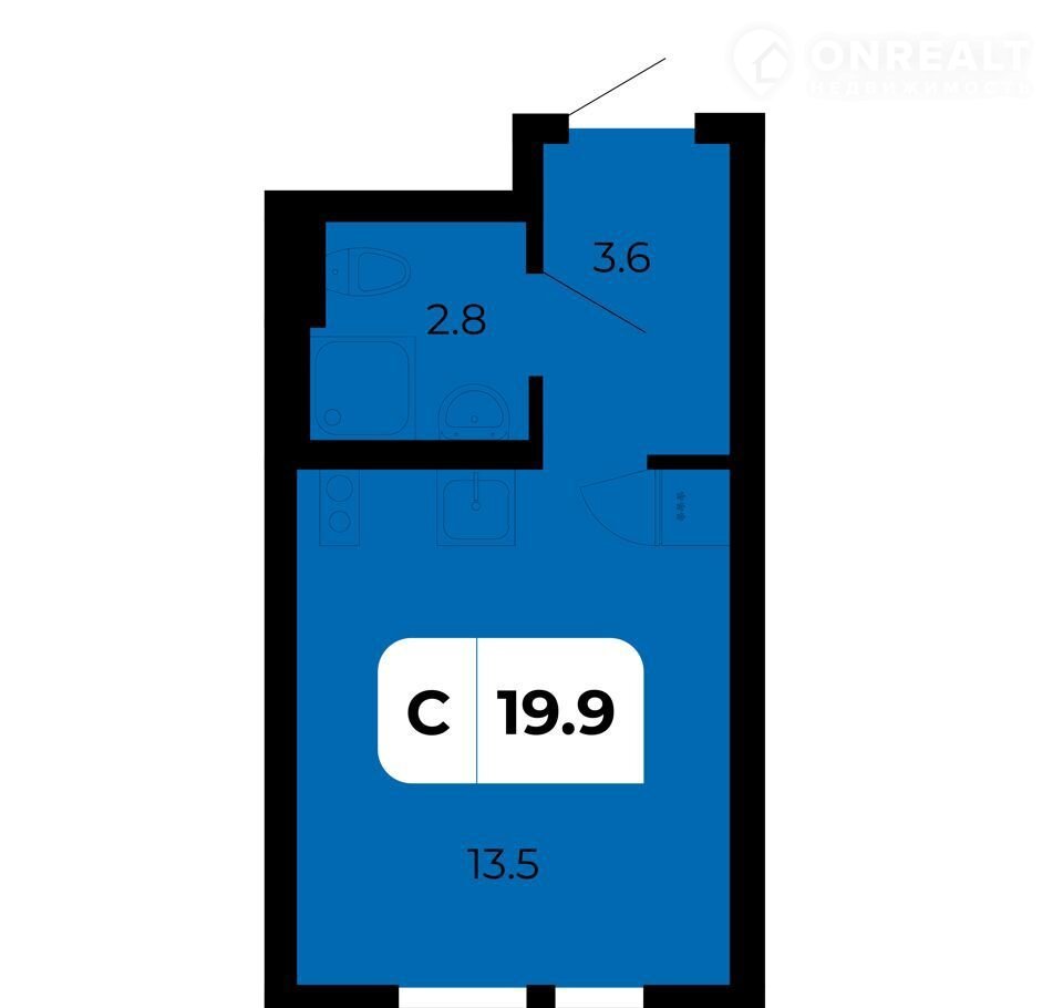 Общая площадь 19.9 м2