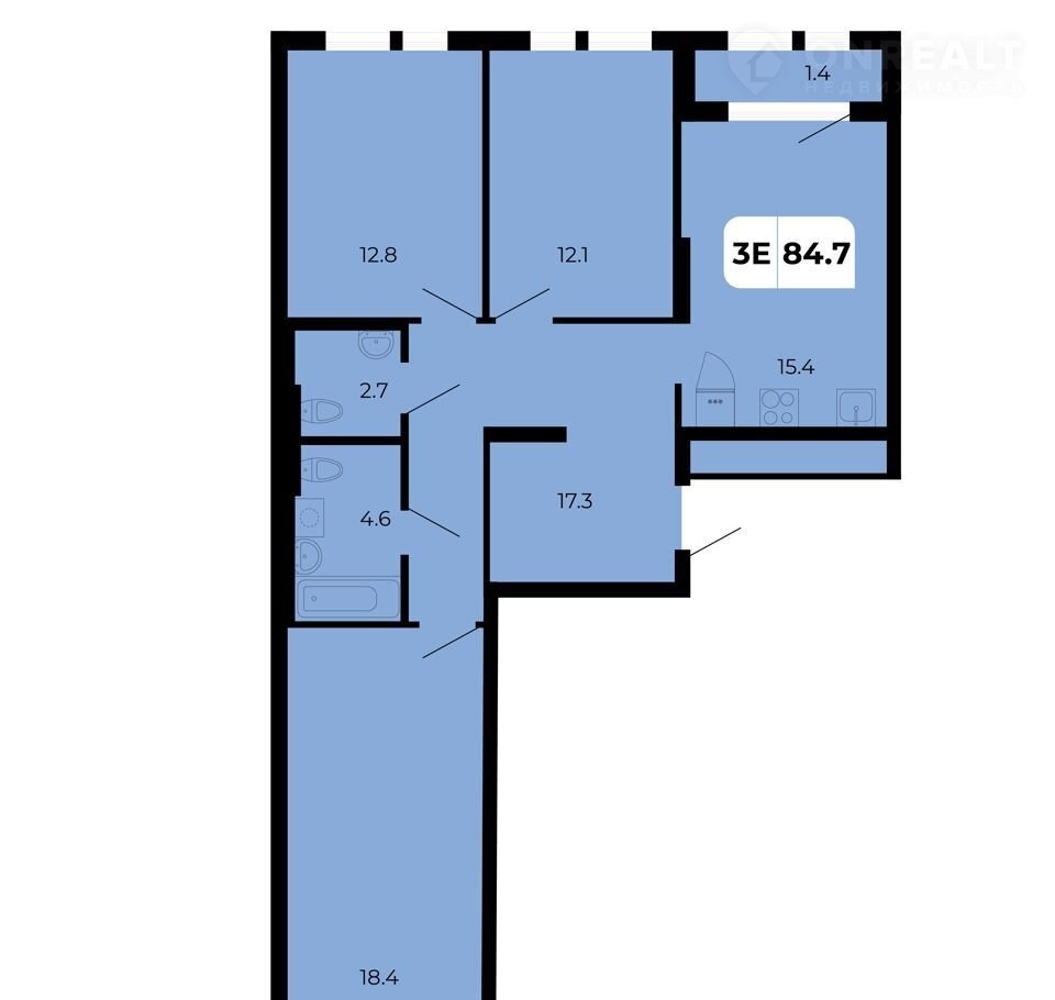 Общая площадь 84.7 м2