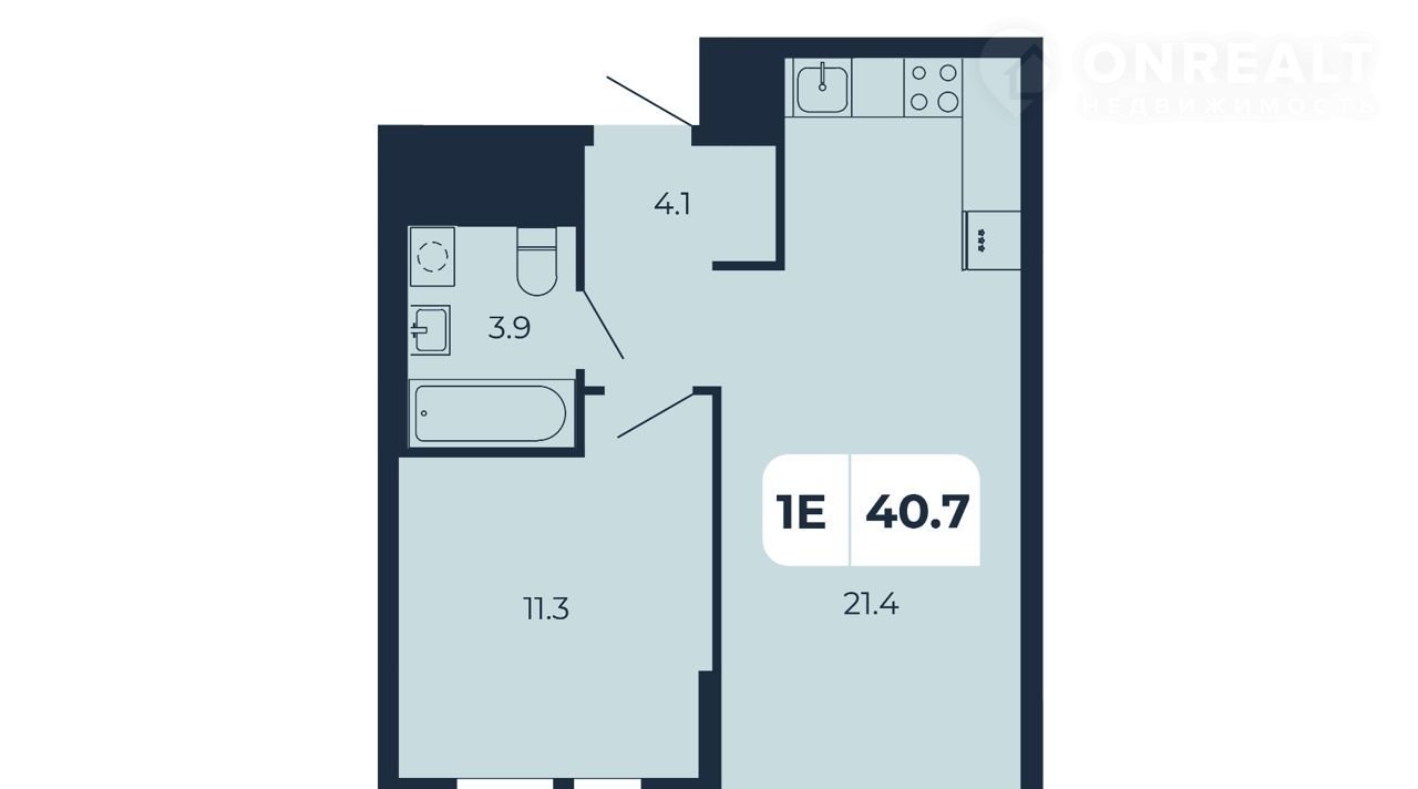 Общая площадь 40.7 м2