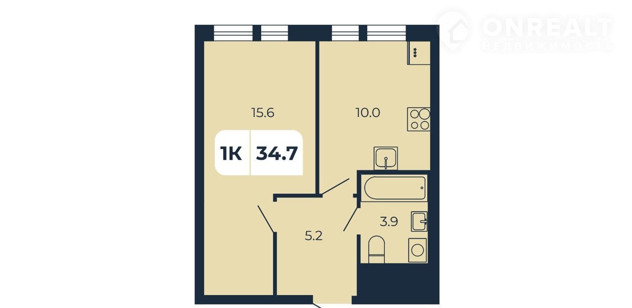 Общая площадь 34.7 м2