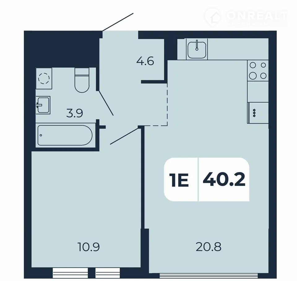 Общая площадь 40.2 м2