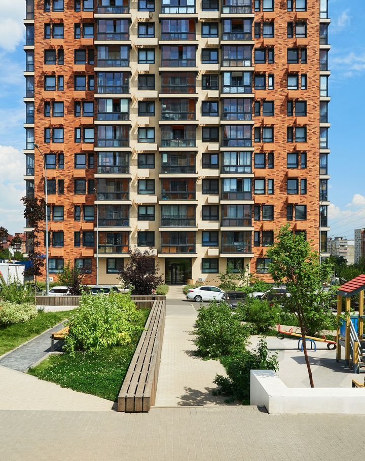 Во дворе детские и спортивные площадки, кафе, магазины.