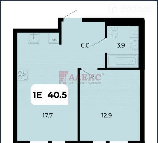 Общая площадь 40.5 м2