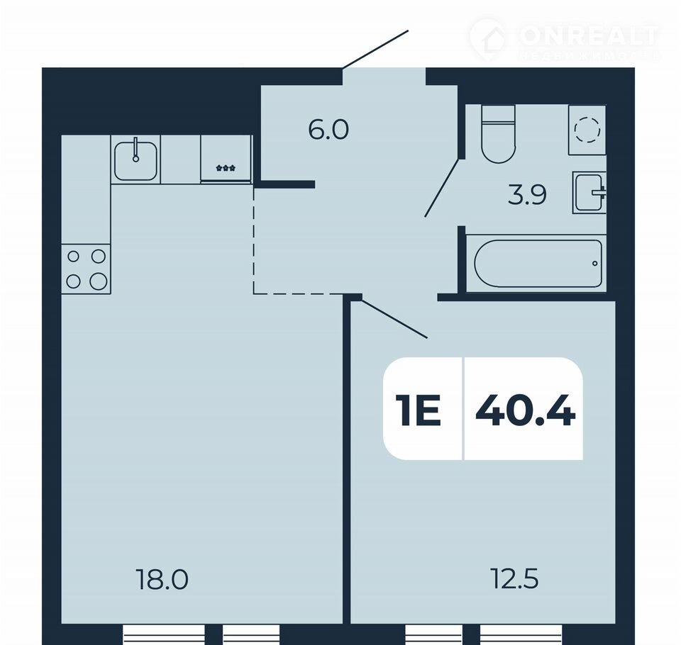 Общая площадь 40.4 м2