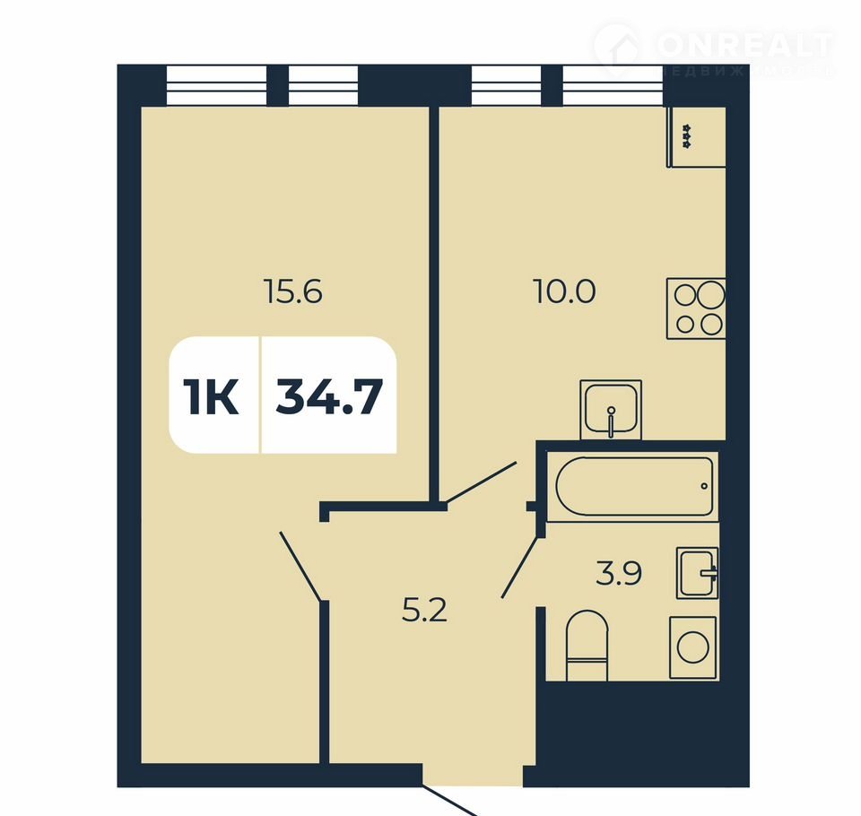 Общая площадь 34.7 м2