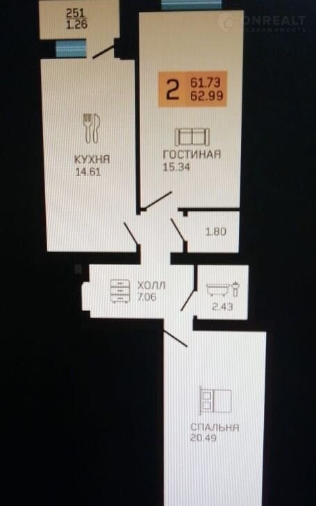 Общая площадь 63 м2