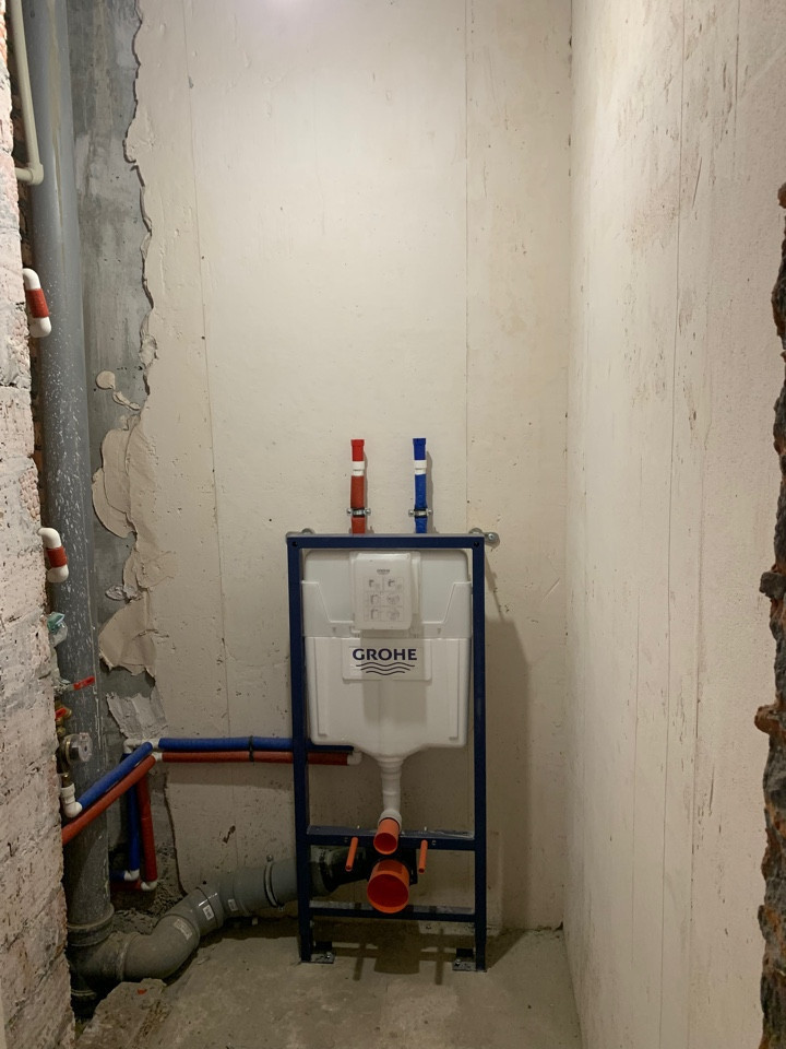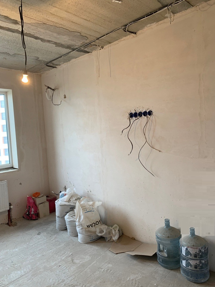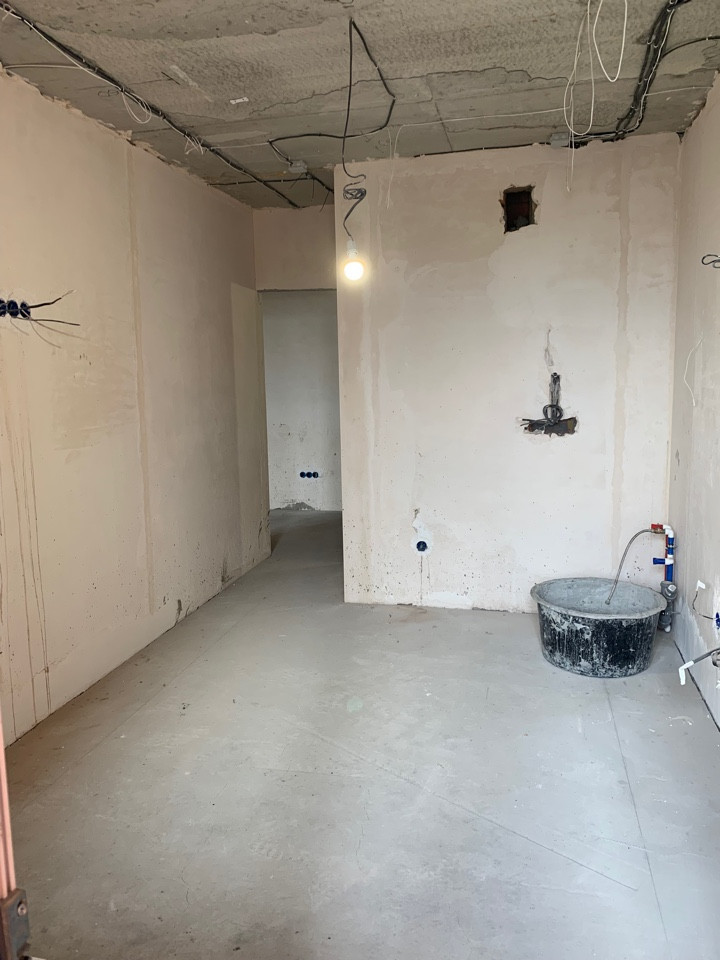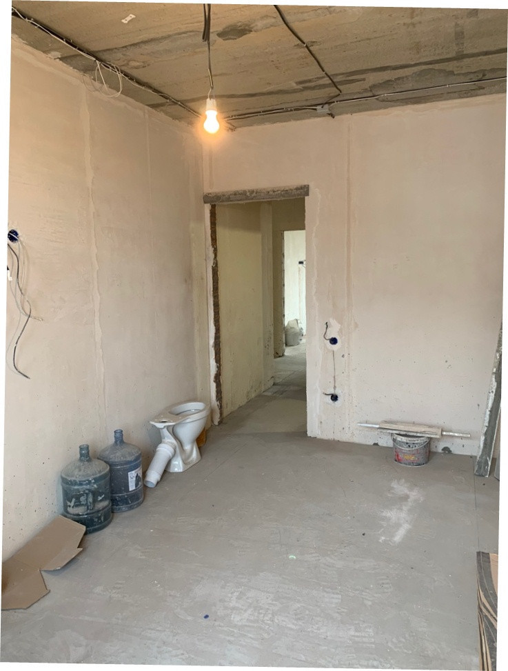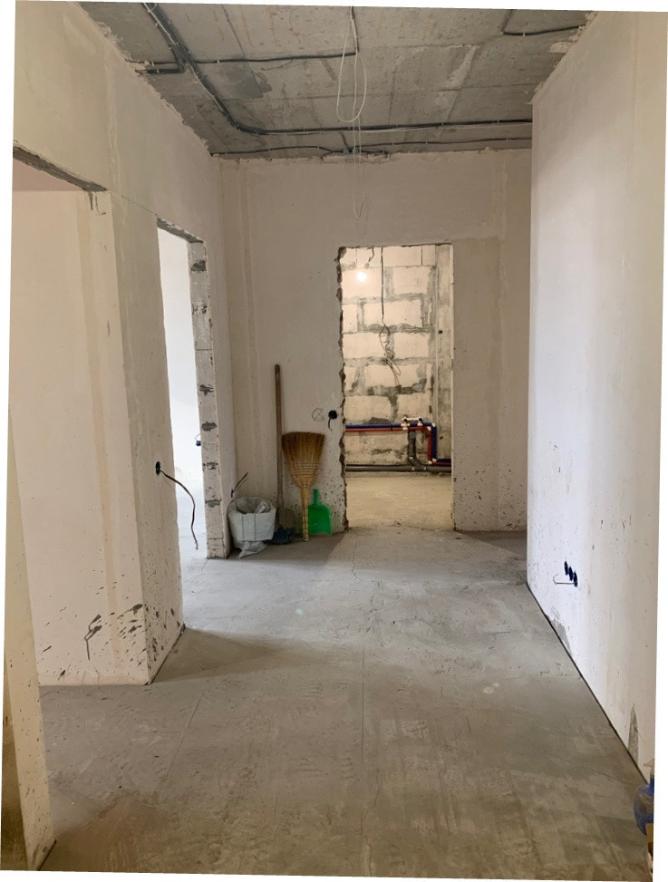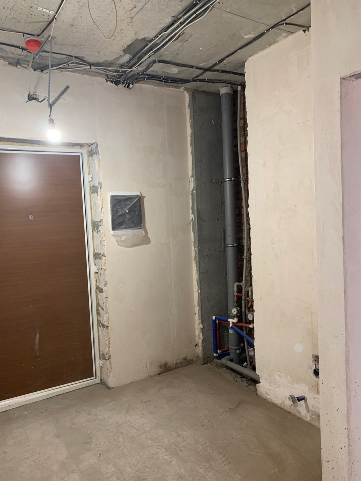Сделан предчистовой ремонт, разведены водяные и канализационные трубы, в сан узлах сделана инсталяция и подводка под полотенцесушитель.