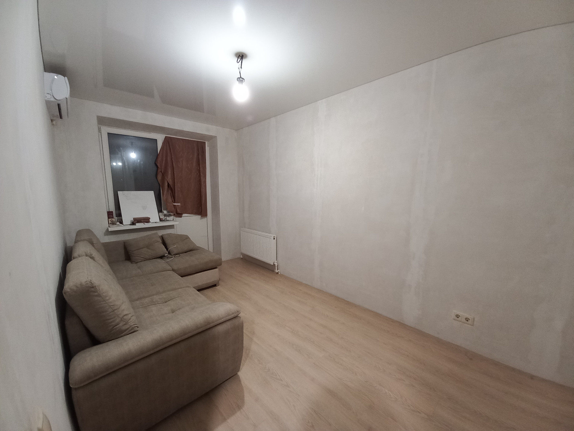 Просторная квартира в молодом ЖК Спутник.  Отдельная прихожая, объёмный санузел,  светлая кухня, правильной формы комната. Панорамное остекление. Отдельная гардеробная. В квартире натяжной потолок, качественная плитка, ламинат в комнате.