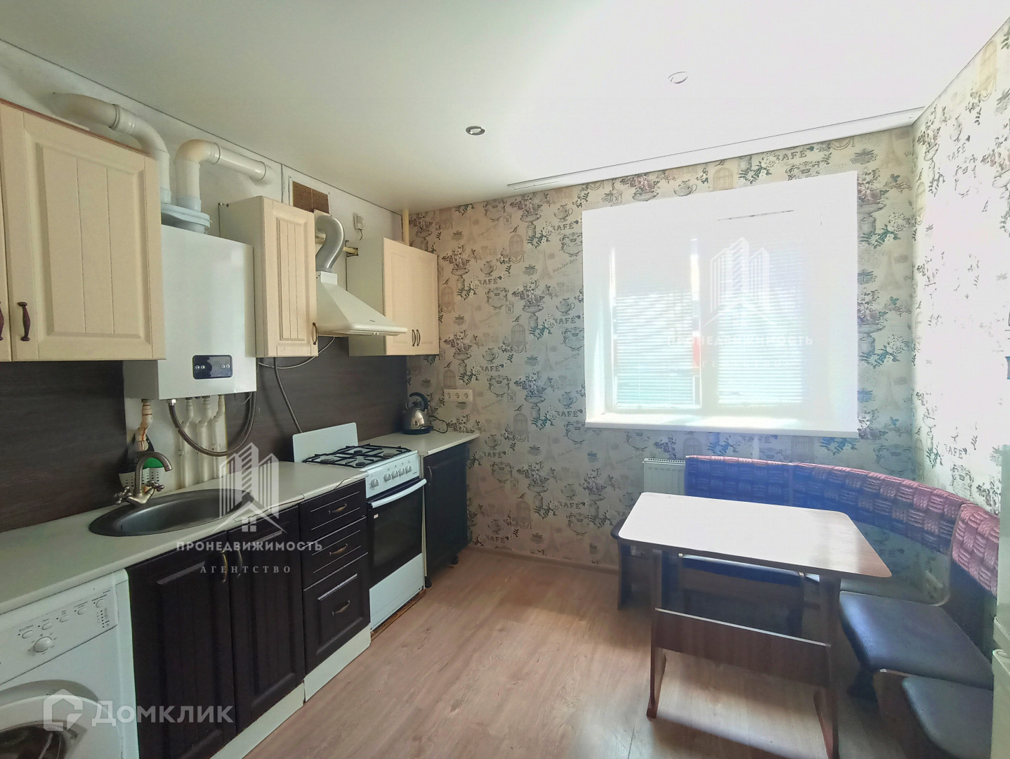 На кухне установлен двухконтурный котел. Вы можете под себя настроить отопление и поддерживать комфортную температуру и не переплачивать за это.