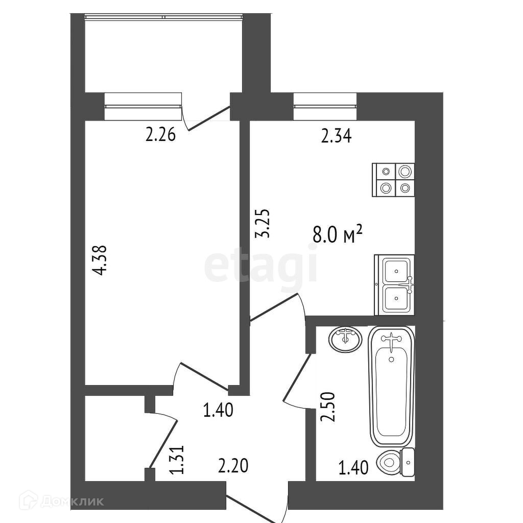Общая площадь 26 м2